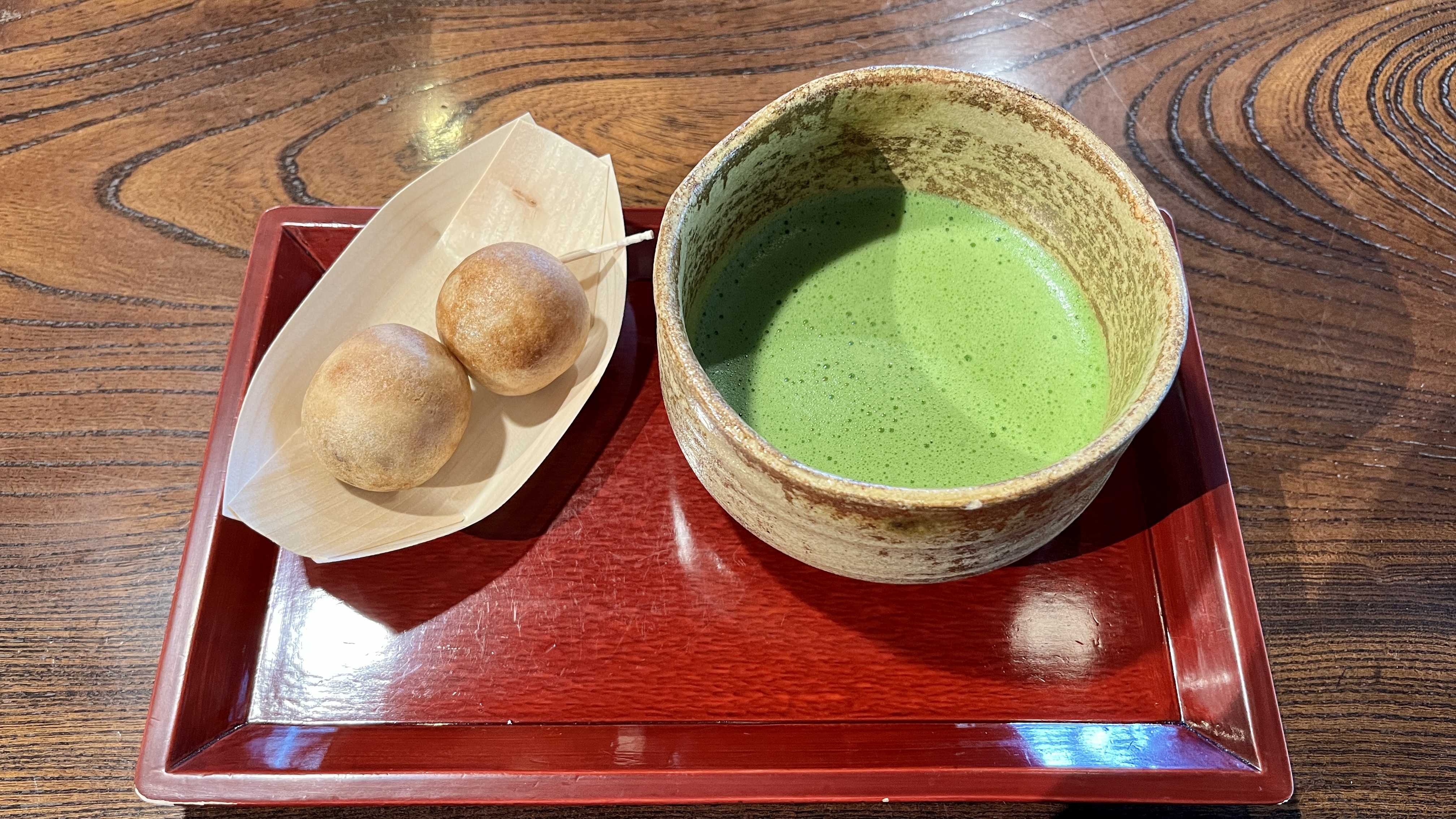 つぶら餅と呼ばれる丸形のお餅のなかにはあんこが入っていて、店内ではできたてのつぶら餅が食べられます。1つ150円ほどと少し値段が張りますが、お抹茶と合わせていただくと、近江八幡の優雅な雰囲気と合わさって贅沢な気分になれます。