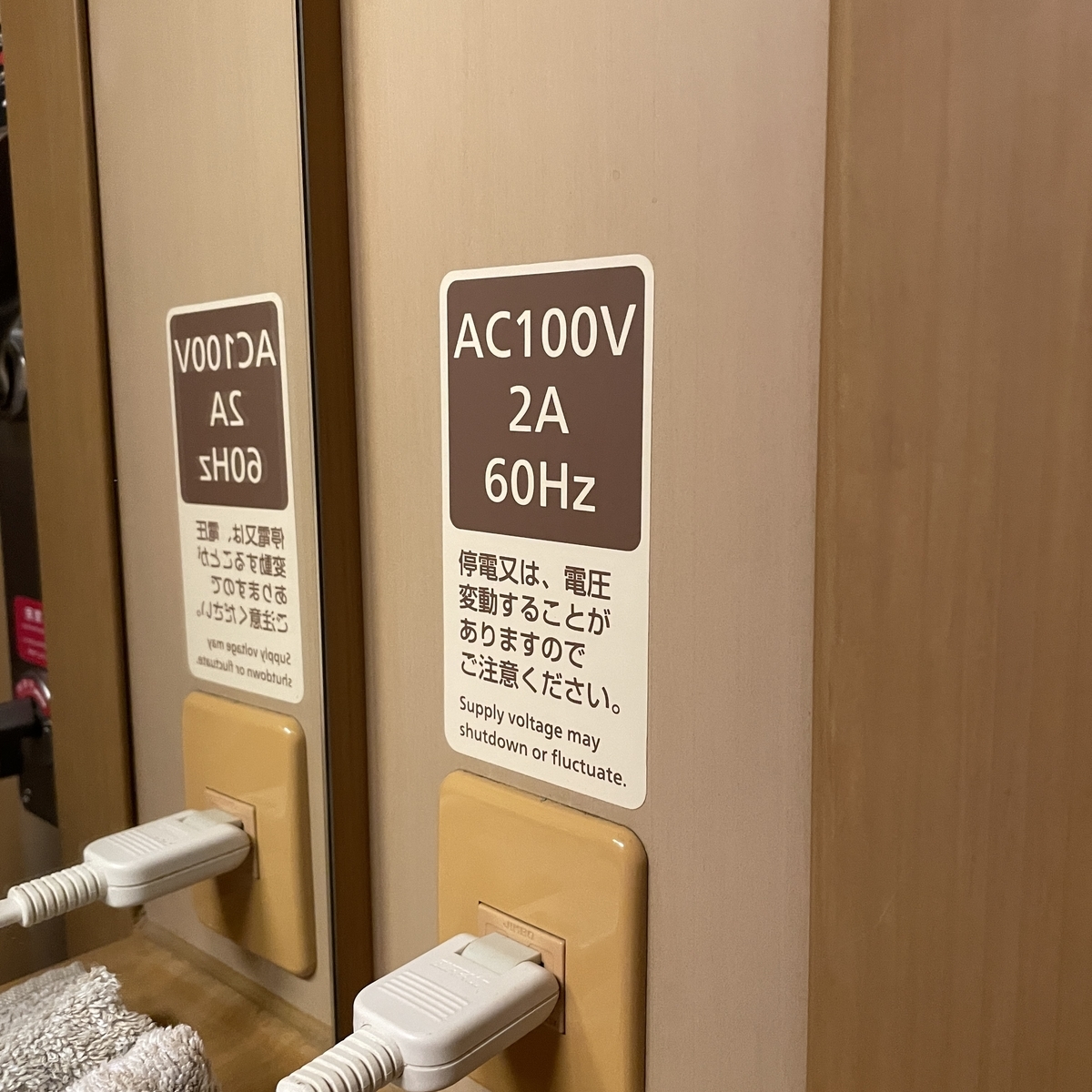 コンセントもついていますが一口なので、延長タップなどを使用すると便利ですね。また、西日本の車両なので、コンセントが60Hzの周波数なんですね。