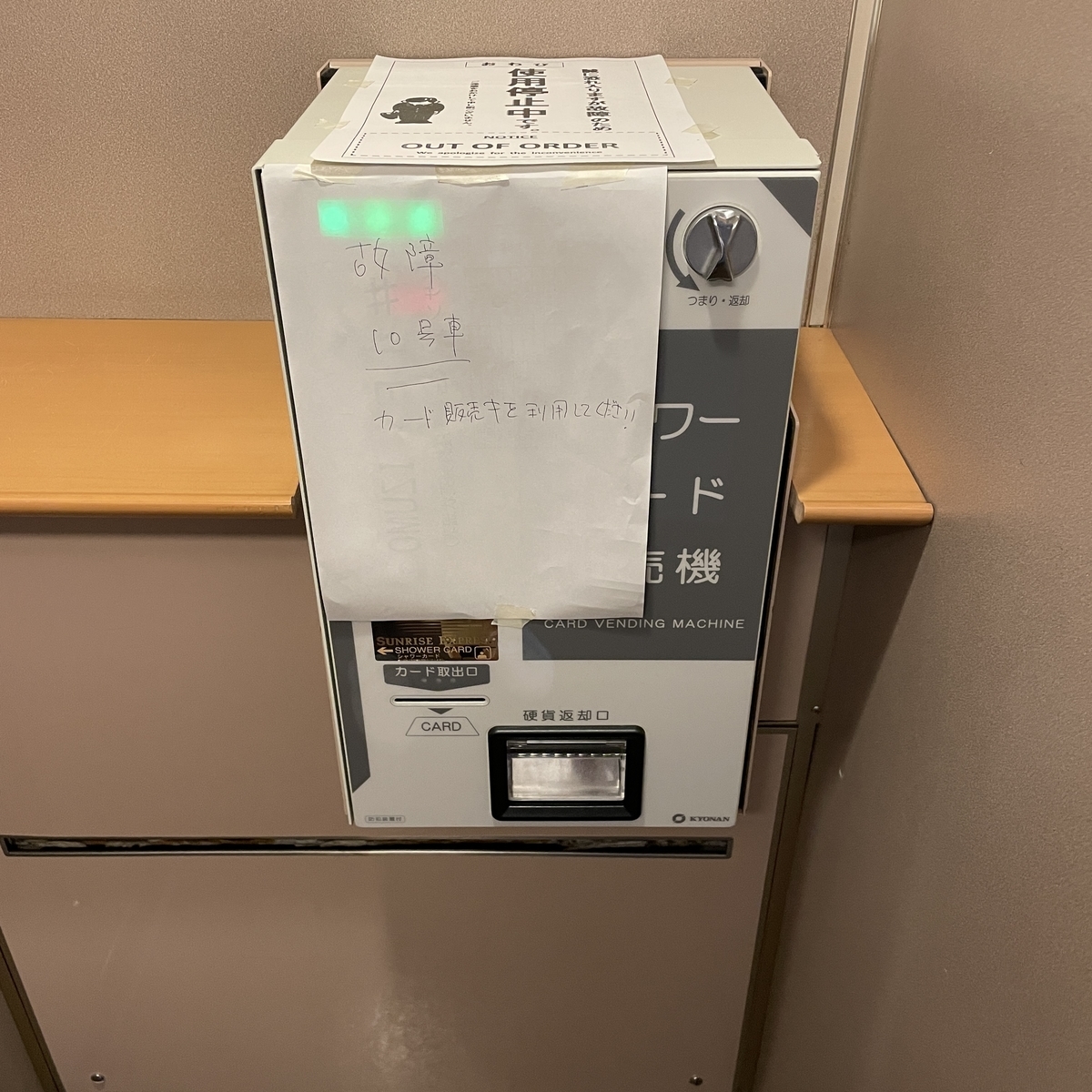 シャワーカード発券機が故障中!
