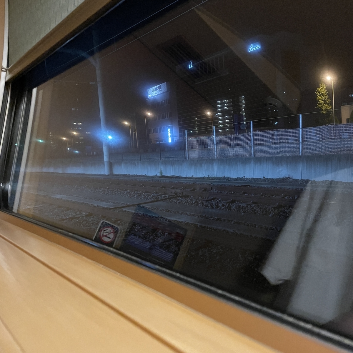 岡山駅でシャワーカードを逃した後はすごすごと部屋に戻りましたが、なかなか出発しません。どうやら連結の確認にかなり時間がかかっていたようで、サンライズは20分ほど遅れて岡山駅を出発しました。