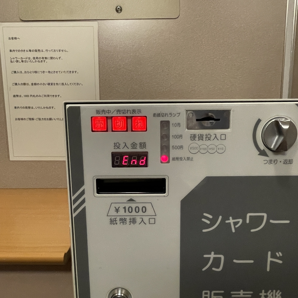 このシャワーカード発券機が故障しており、サンライズ瀬戸を利用する全員がシャワーを使えない事態に、、、