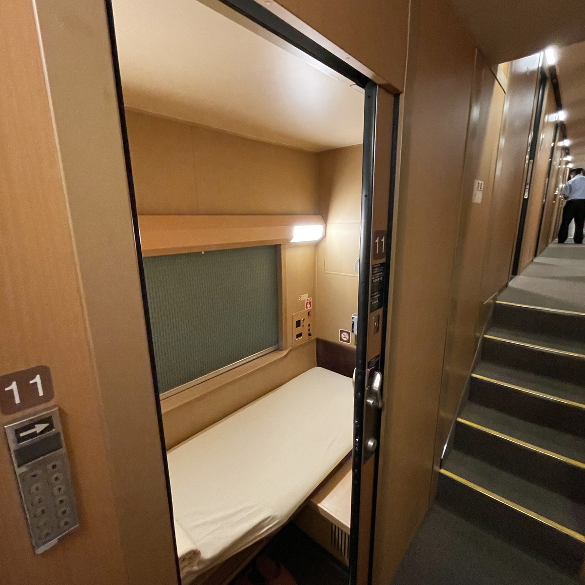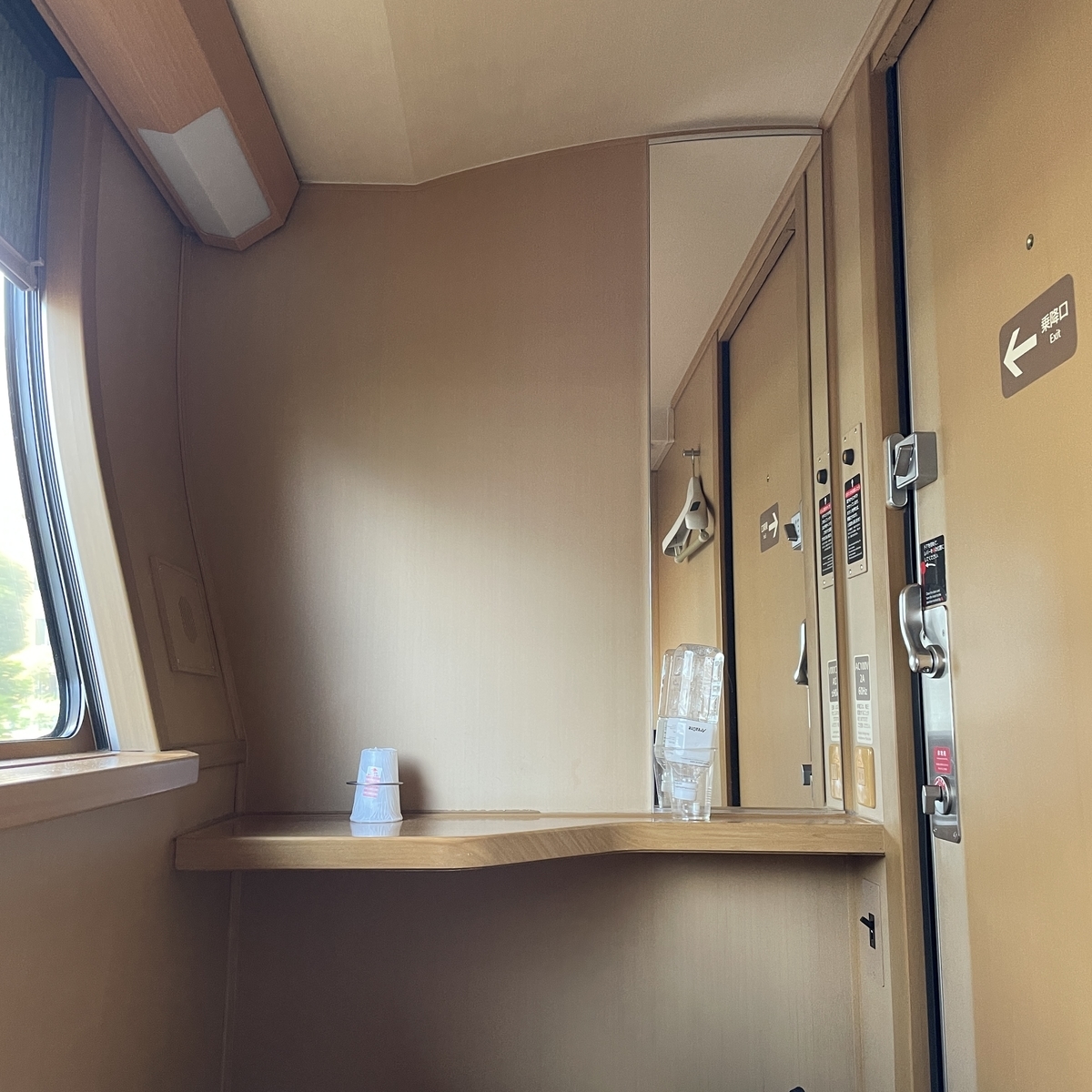 部屋の変更は行っていませんが、今回の部屋は先頭車両の14号車、しかもほぼ先頭の10番の部屋でした。一番先頭の11番は平屋とよばれ天井が高いこともあって人気の部屋なのですでに予約済みのようでした。次は狙っていきたいです。