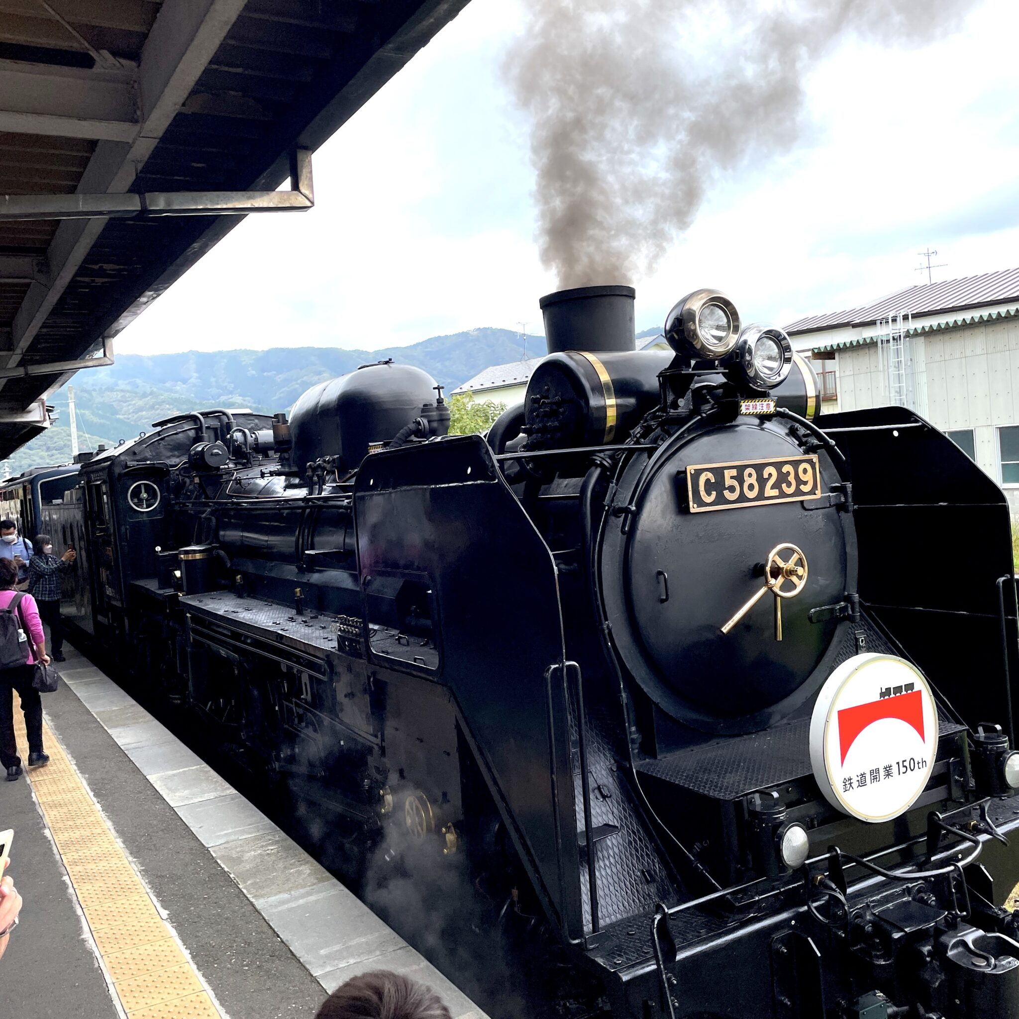 遠野に向かう途中で、JR東日本の人気列車「SL銀河」の停車に遭遇することができました。SL銀河は岩手出身の作家宮沢賢治の作品「銀河鉄道の夜」をイメージした列車になっています。