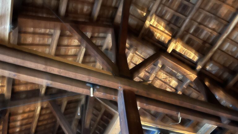 特に午前中の光が差し込む時間帯は、建物内部の木造構造と外の景色のコントラストが美しく撮影できます。