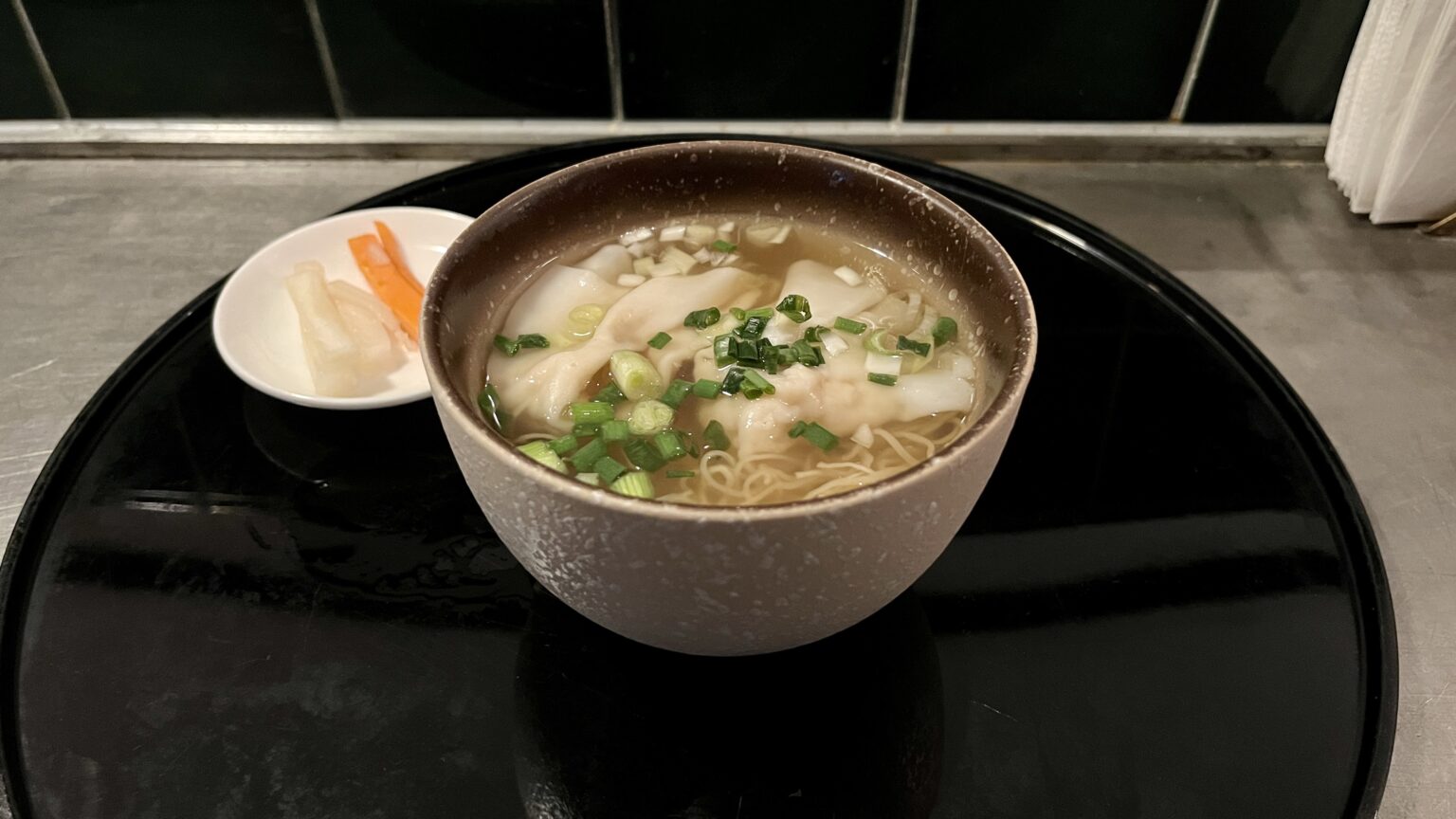 それ以外にもワンタン麺は、ぷりぷりの大きなエビが丸ごと入っておりレストランで食べるものと遜色ない味です。スープは海鮮のだしが効いた旨味の強い味で、日本人好みの味付けです。