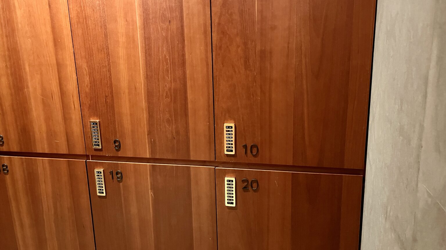 ラウンジ内入り口には手荷物を預けるためのロッカーが完備されています。1人の場合には、食事やドリンクを取りに行く際荷物から離れることがあるので、あらかじめ安全な場所に保管できます。