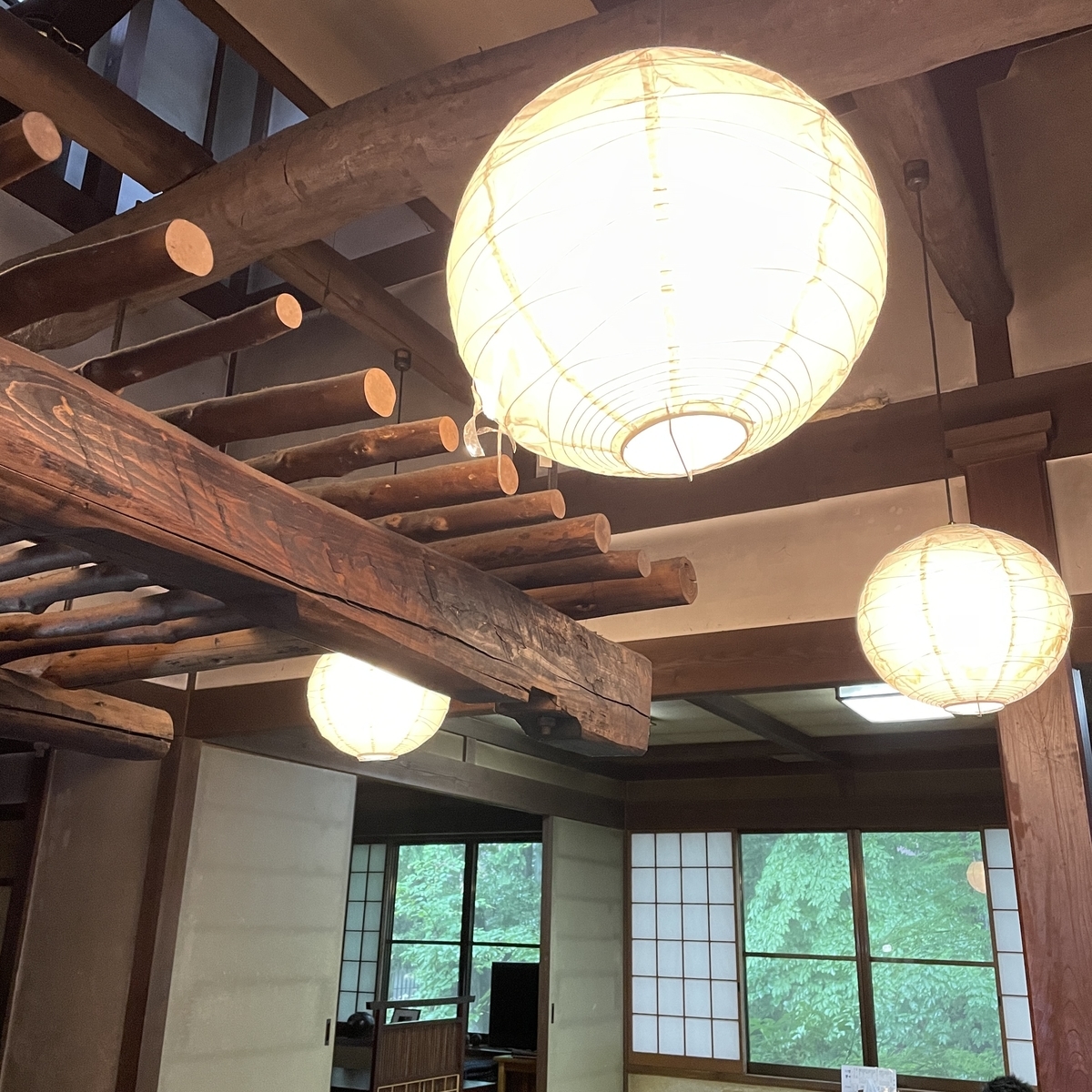 古民家そのままを使っているような作りで天井が高く落ち着ける店内です。