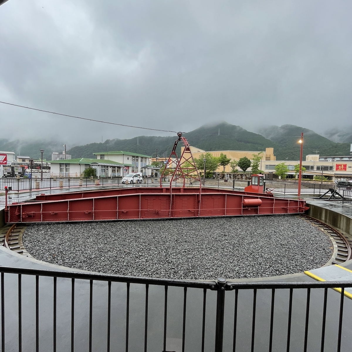駅前にはSL大樹の転車台があります。SLは通常の電車と異なり、逆向きに走ることができないため、終点では前後の向きを反転させる必要があります。タイミングが良ければここでぐるっと回るSLが見れそうですね。
