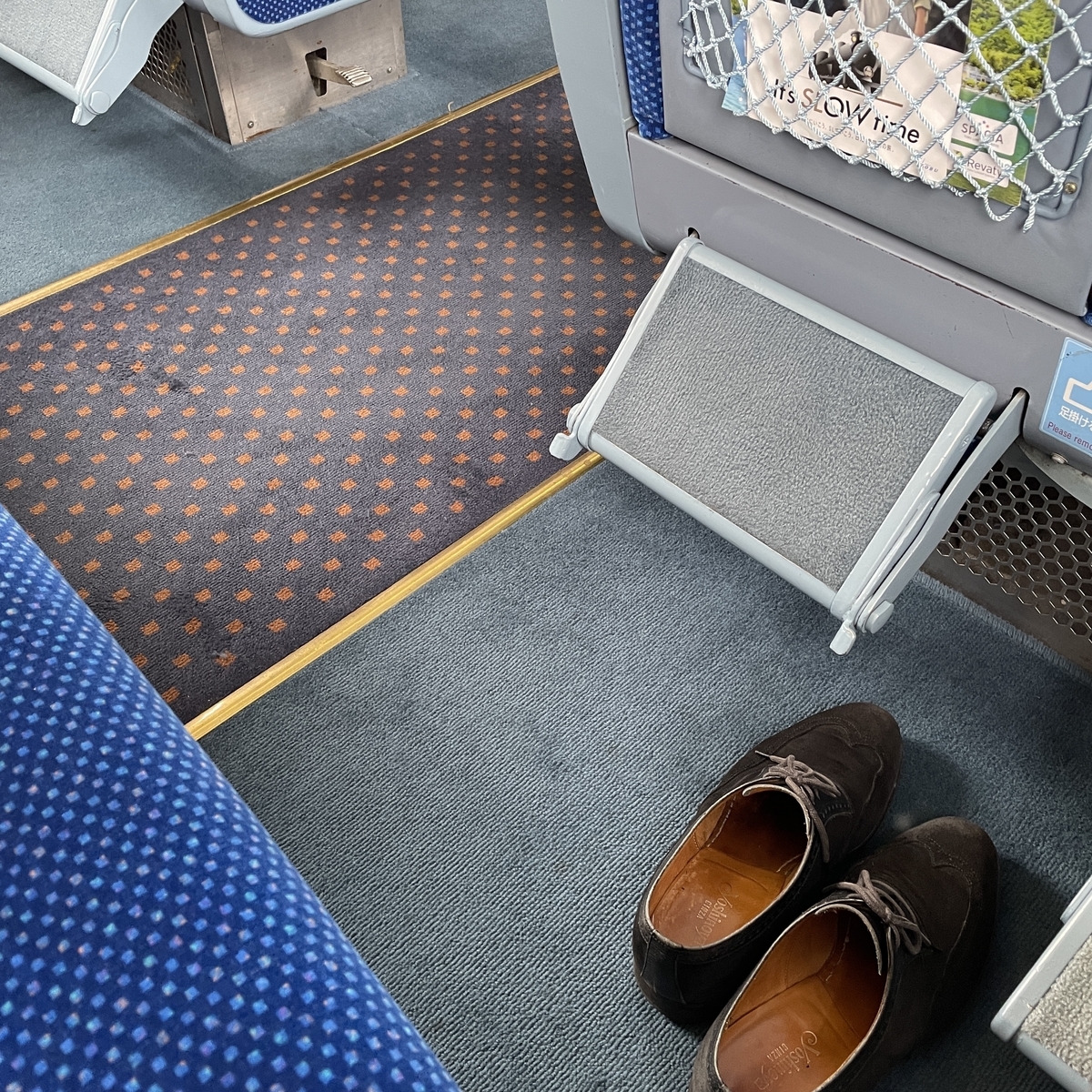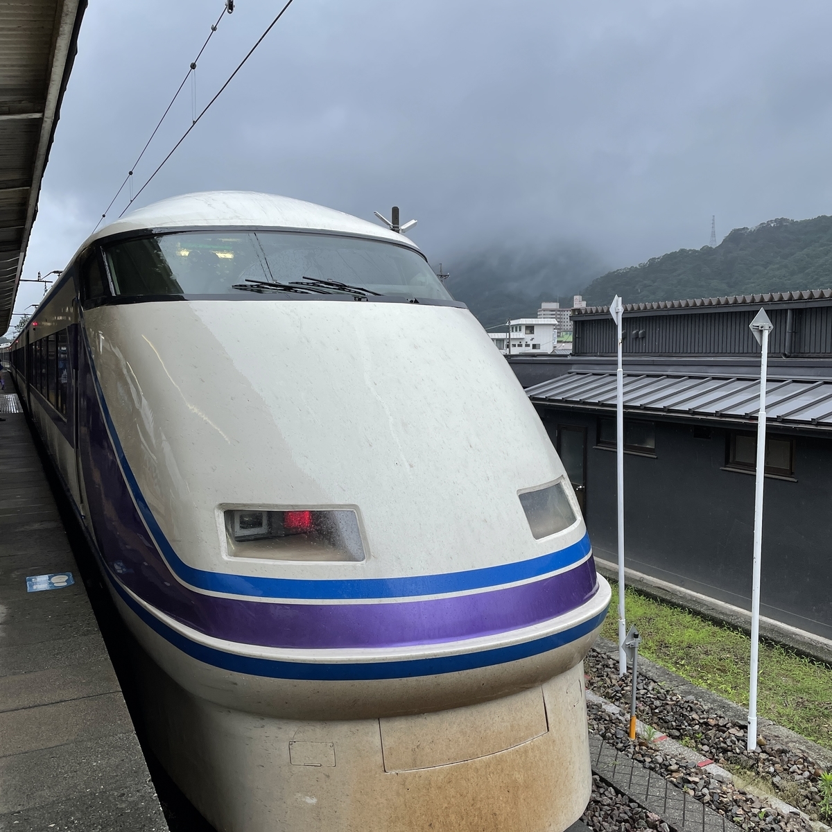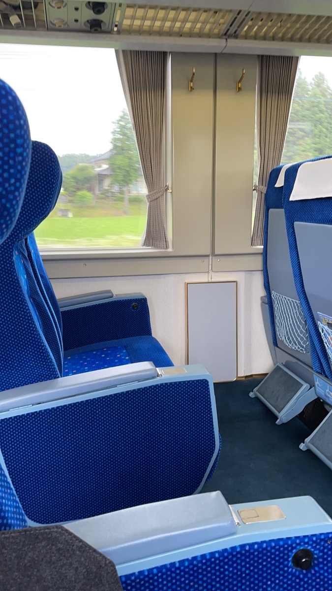 特急スペーシアで鬼怒川温泉駅まで約1時間半。バブル期の贅沢な座席を隣席も気にせずゆったりと座れます。