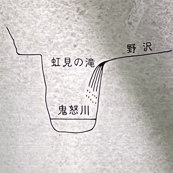 滝のある野沢は火山岩の固い地質で、一方本流のある鬼怒川の地質は流紋岩という柔らかい地質です。鬼怒川の侵食力の強さもあってどんどん高さに差が生まれ、このような滝になったとされています。