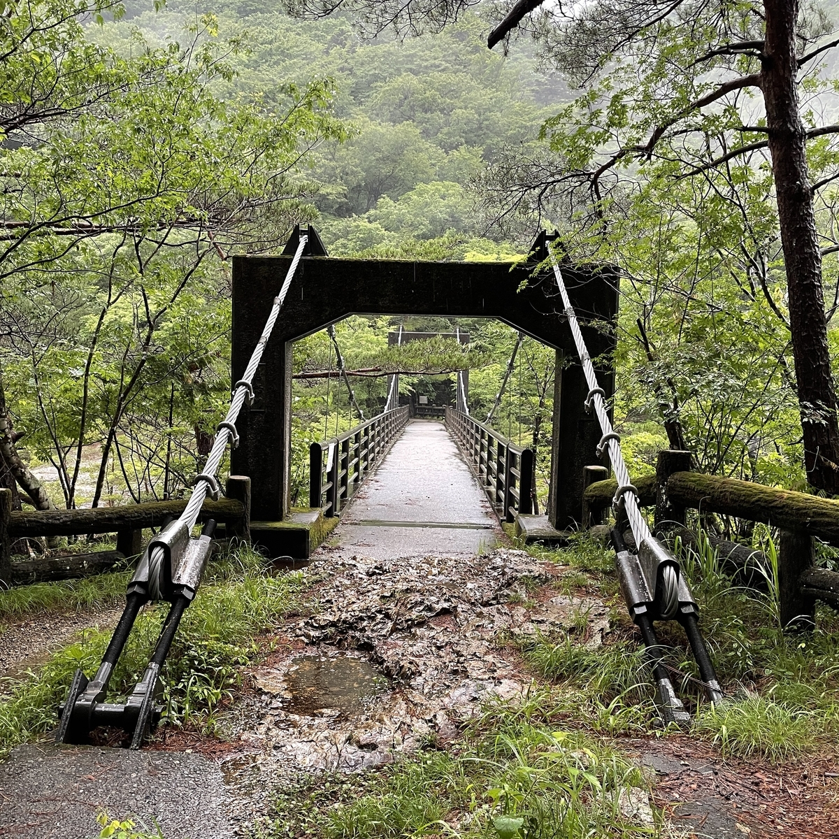 少し離れた場所からのむささび橋。歩くたびにグラグラと揺れる吊り橋です。
