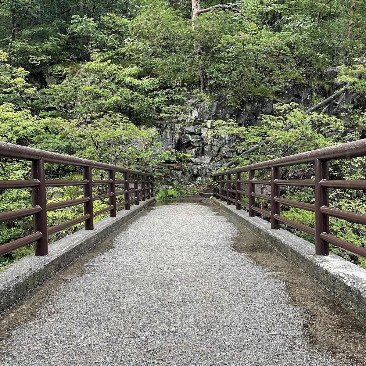 ここからも虹が見えるのかも。吊橋ではないので、足元が安定していて渓谷の景色を安心して見ることができますね。