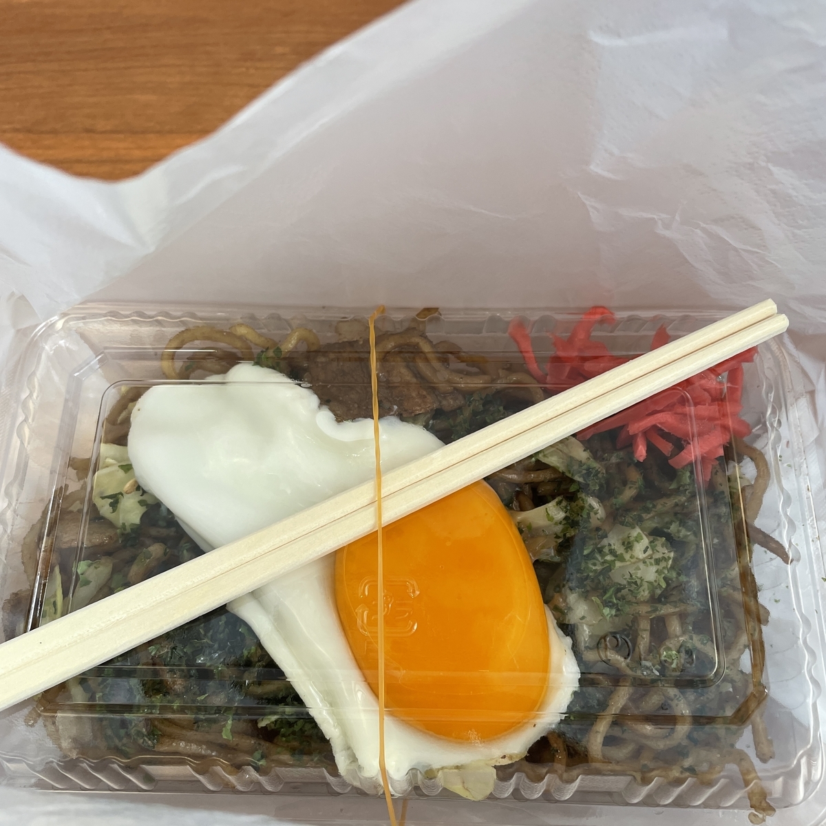 たった300円でたっぷりの焼きそば。初めての訪問であることをお伝えすると目玉焼きをサービスしてくれました。
