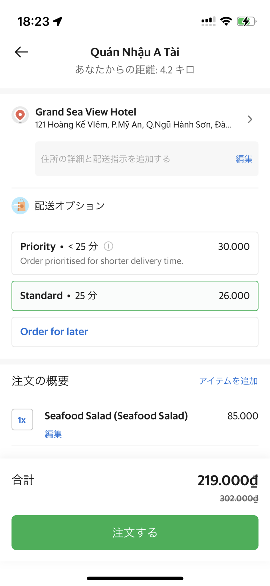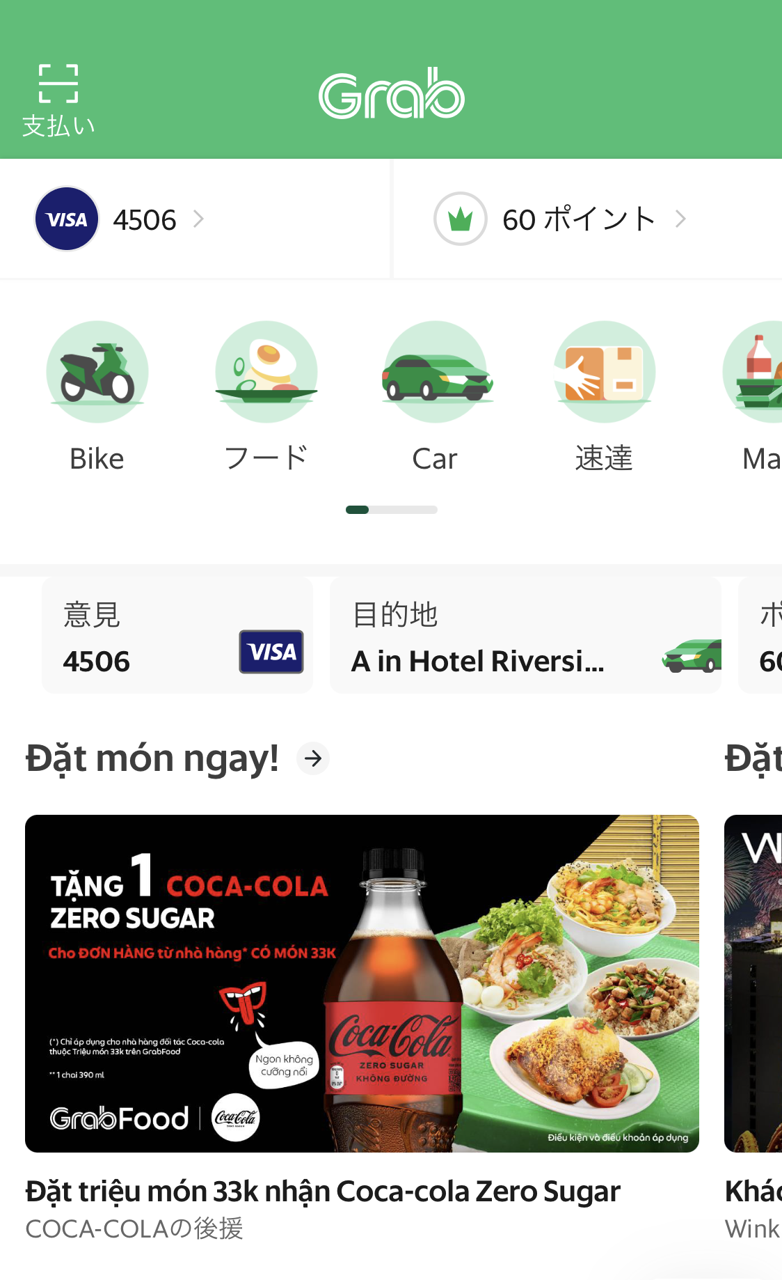 今回のベトナム旅行では、このサービスのおかげでほとんどの食事は会話をする事なくデリバリーで済ませて、移動はアプリであらかじめ設定した場所へ連れて行ってもらいました。