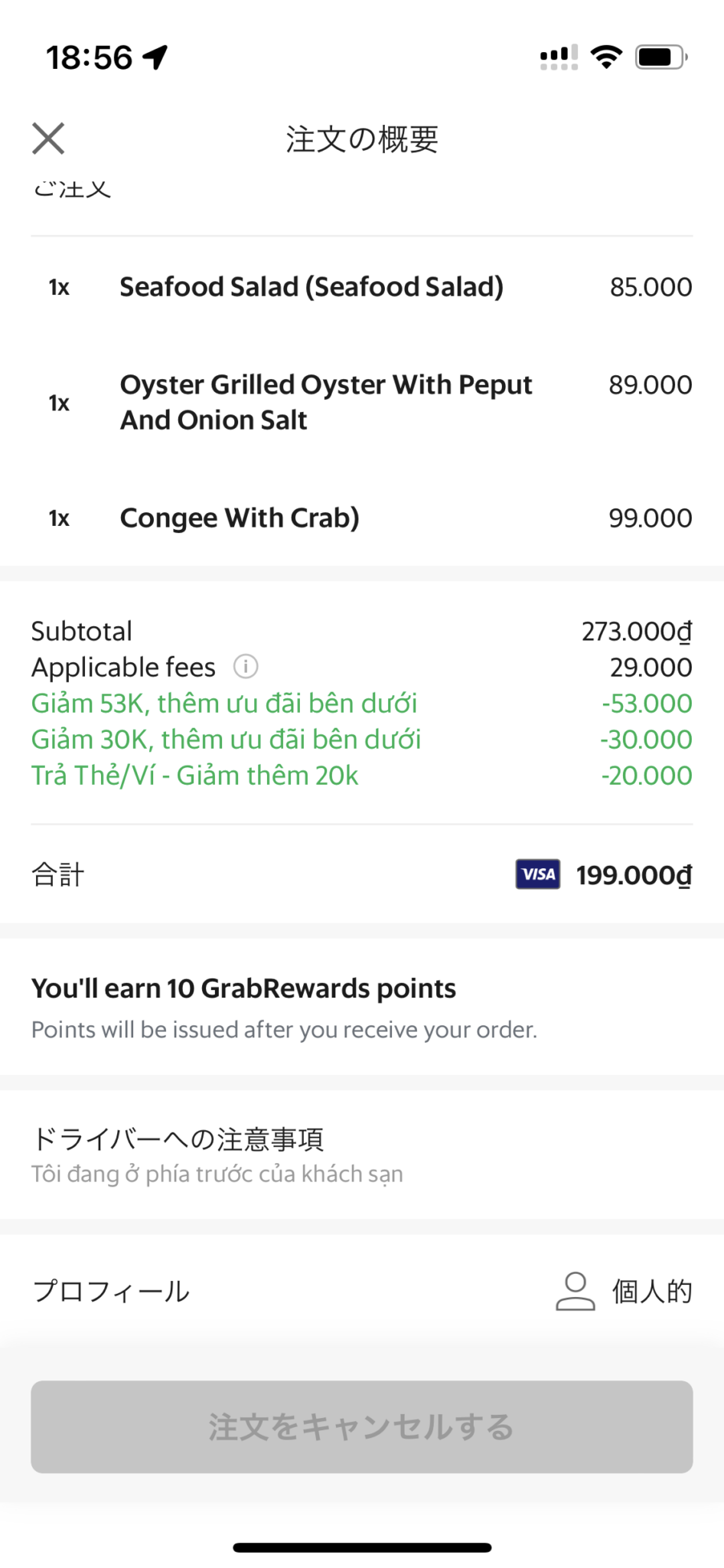 最低利用料金などの制限はありますが、多くのプロモーションは併用することも可能で、一度の注文で100,000VNDもの割引になることもありました!