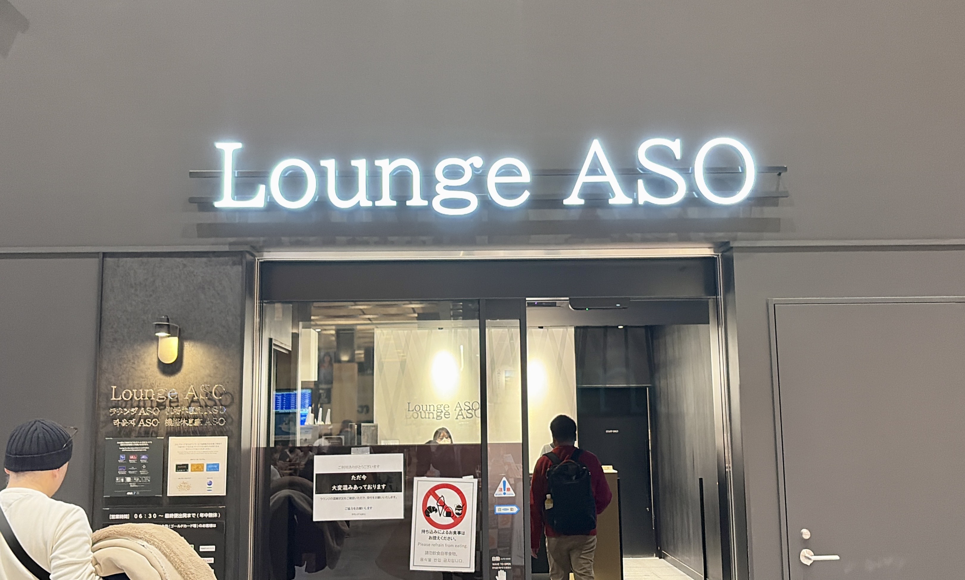保安検査後はラウンジASOでビールと焼酎を一杯。九州の余韻に浸る静かな時間でした。
