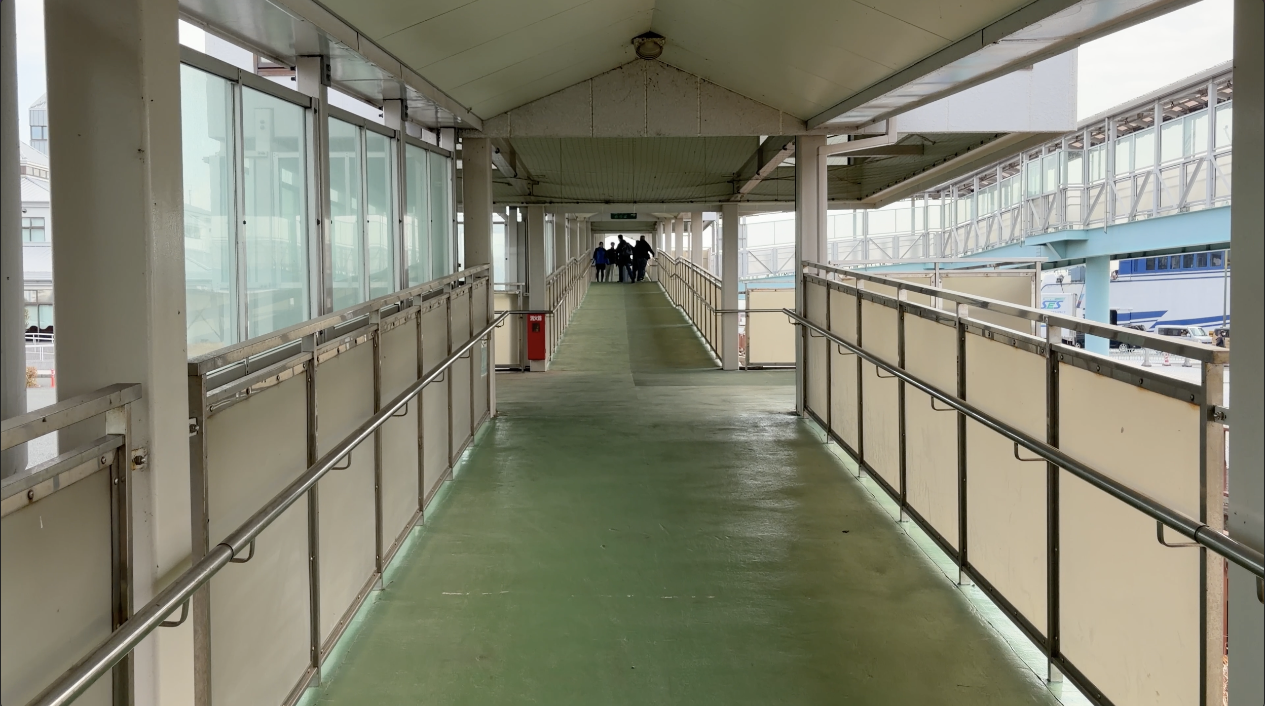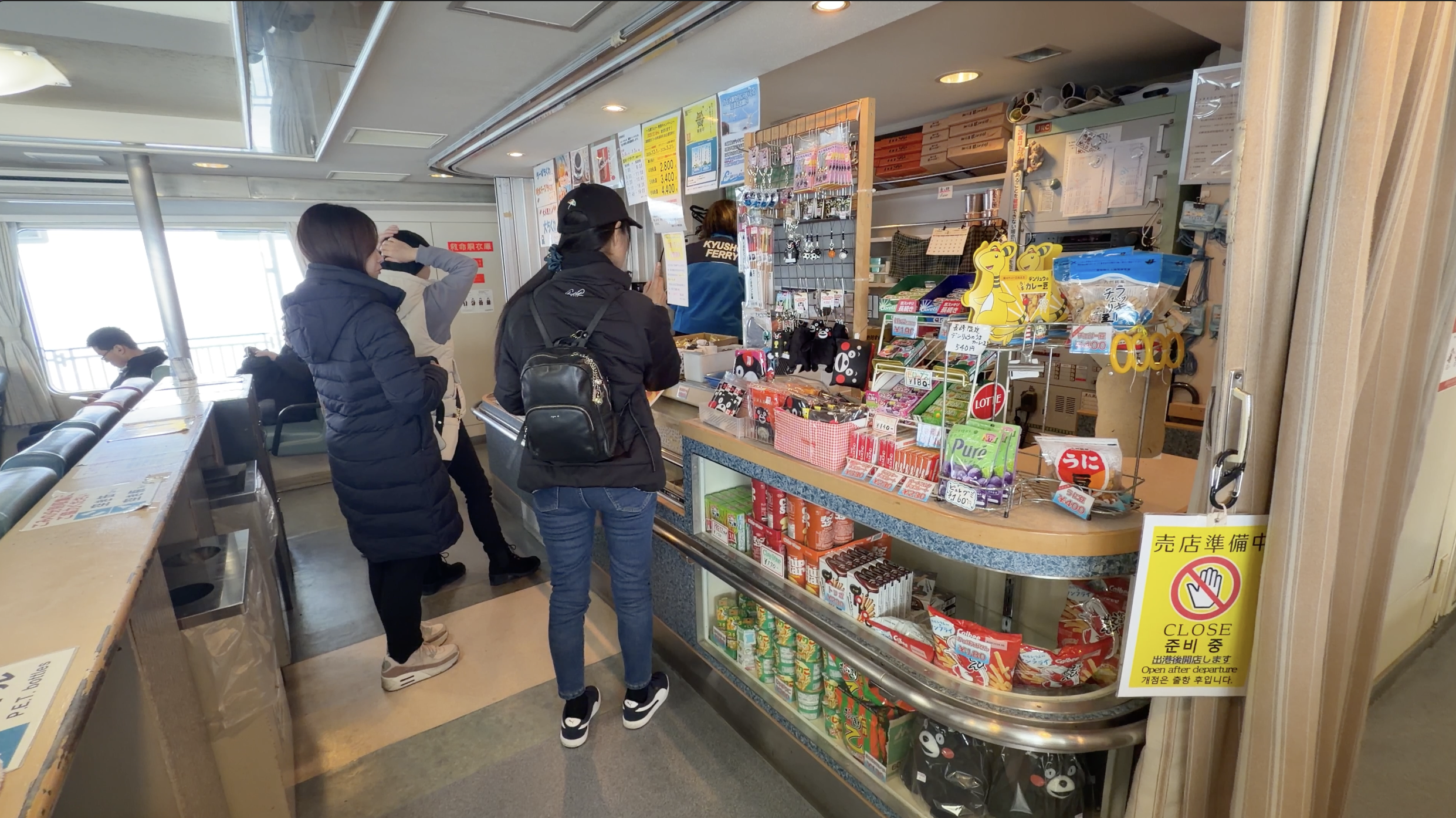 バスでタラップまで移動後、フェリーへ乗船していきます。出発の10分以上前には到着するので、乗船後売店でフェリーの乗船料を支払います。支払いはPaypayなどQR決済もできました。