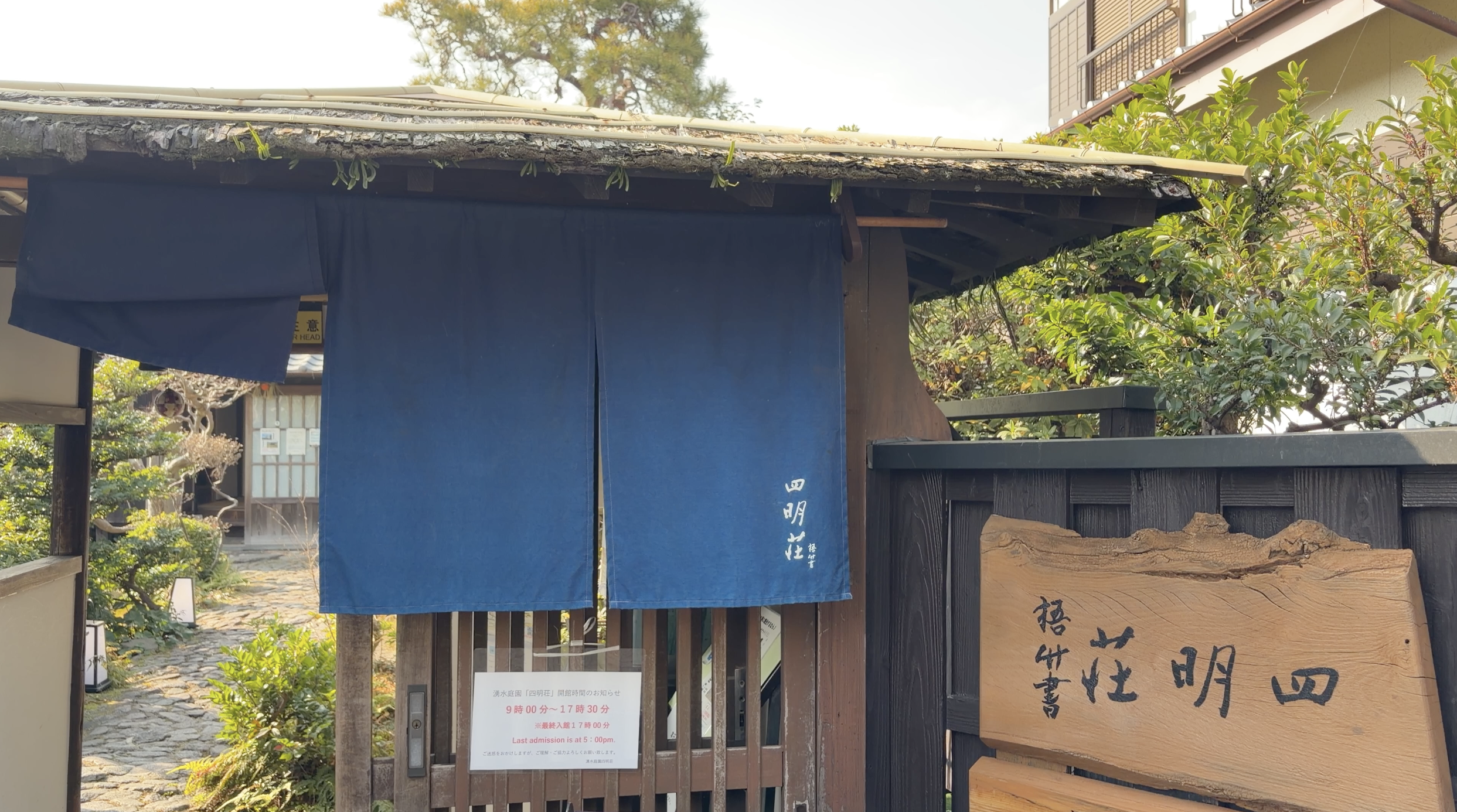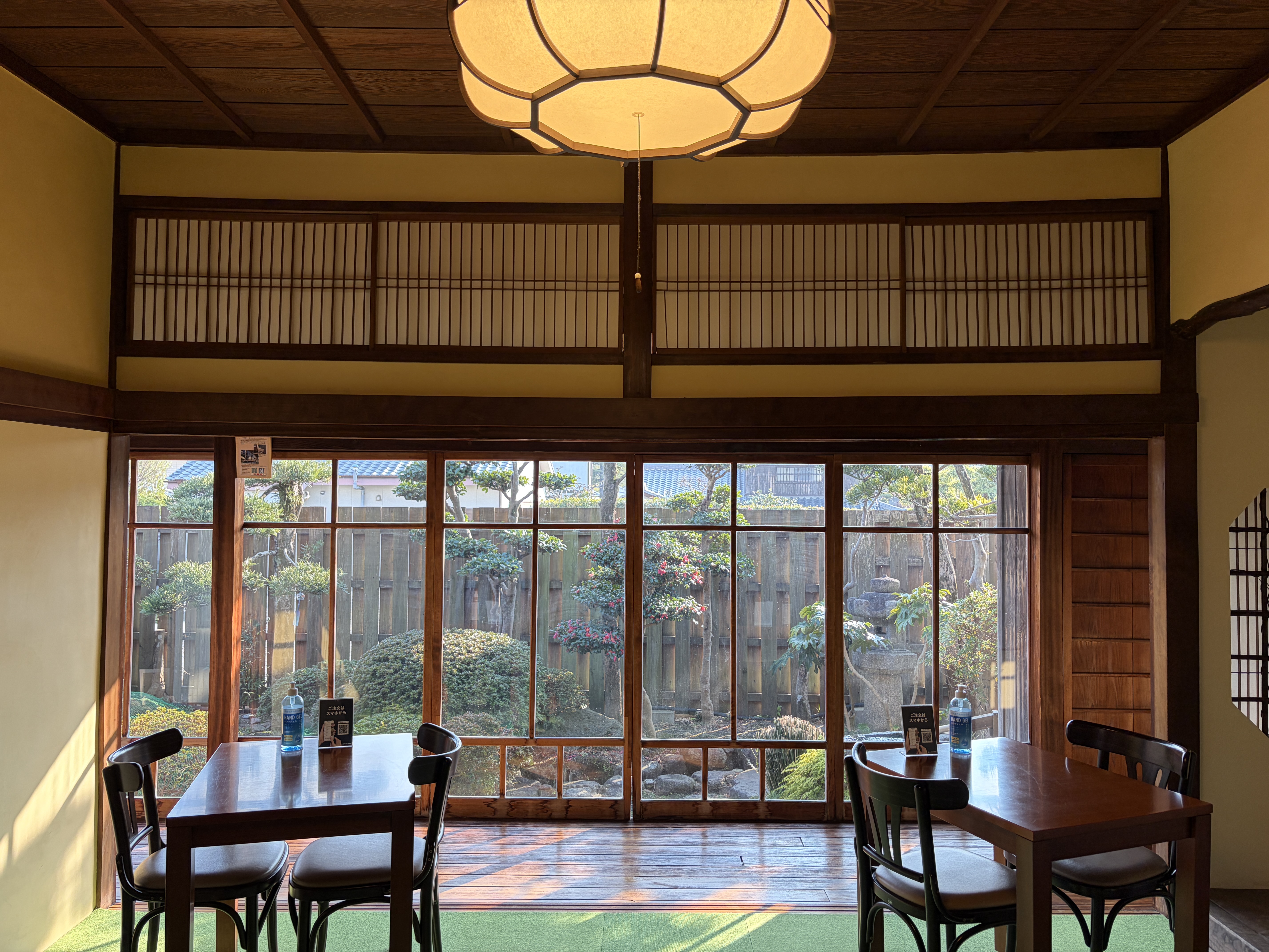 食後は四明荘へ。明治期の邸宅建築で、庭園を眺めながら縁側に腰掛ける時間は格別です。観光客が少ない時間帯を狙えば、静寂そのものを味わえます。