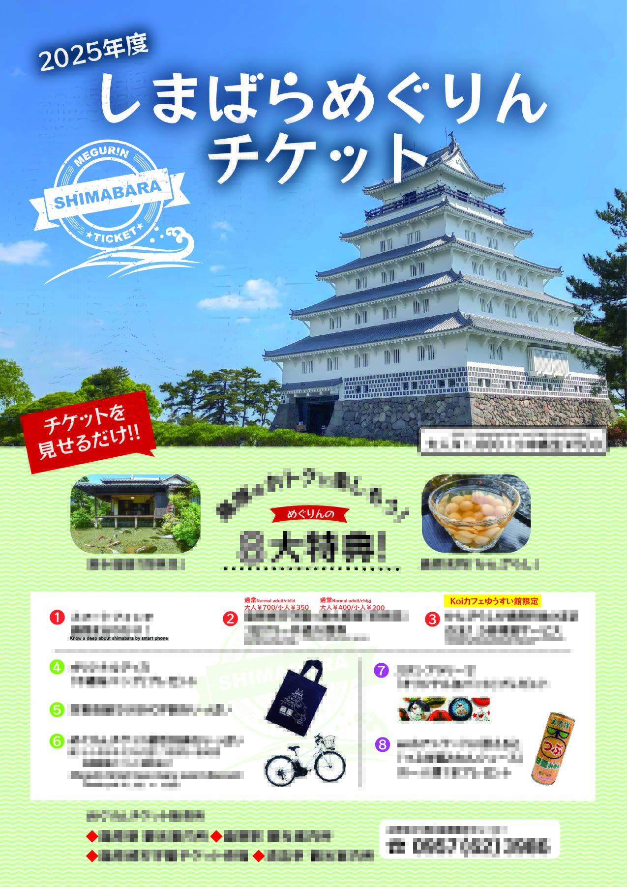 島原城と登録有形文化財四明荘へ行く場合には、しまばらめぐりんチケットの購入がお得です。