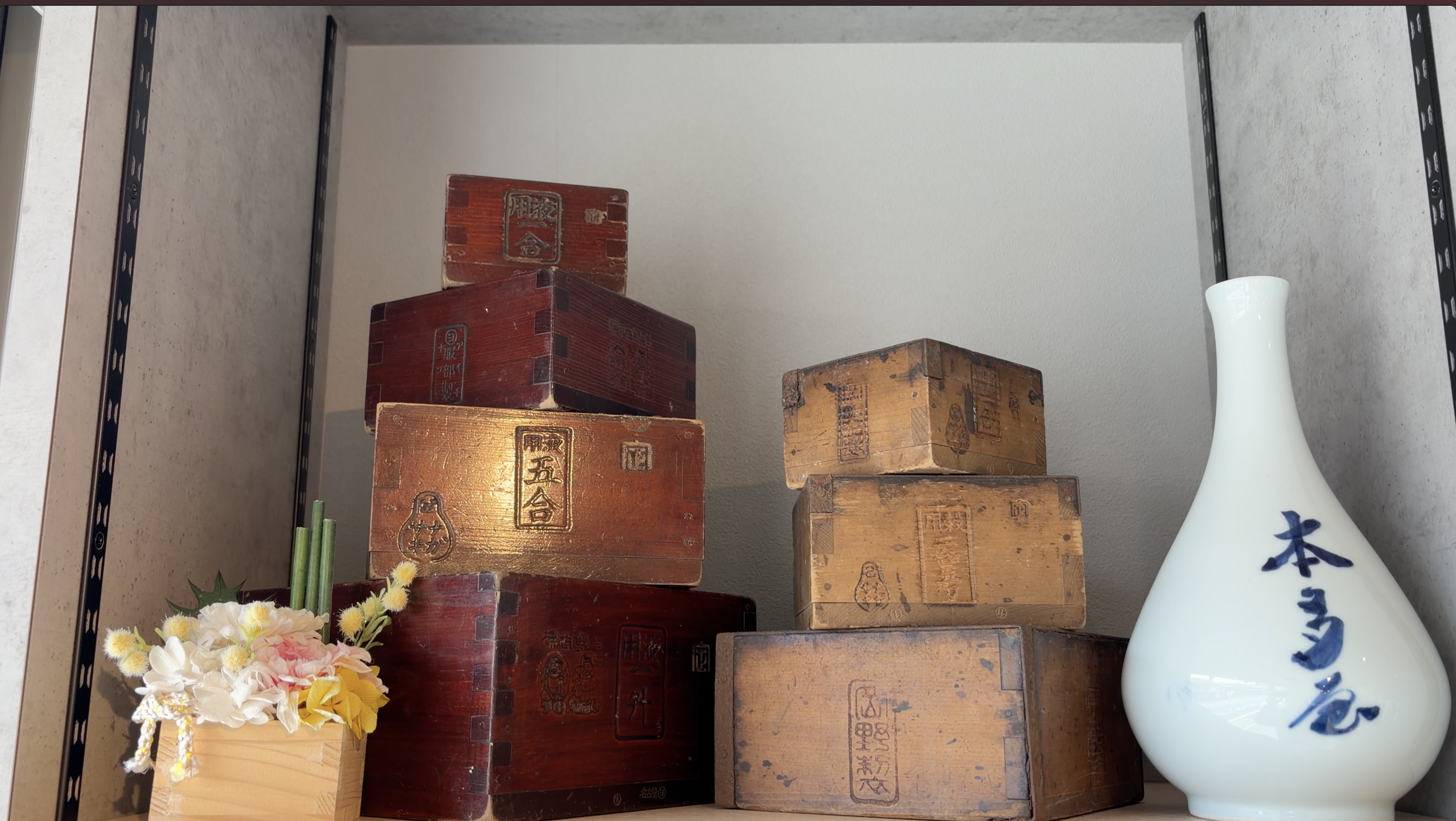 創業当時の酒枡が店舗の一角に展示されていました。