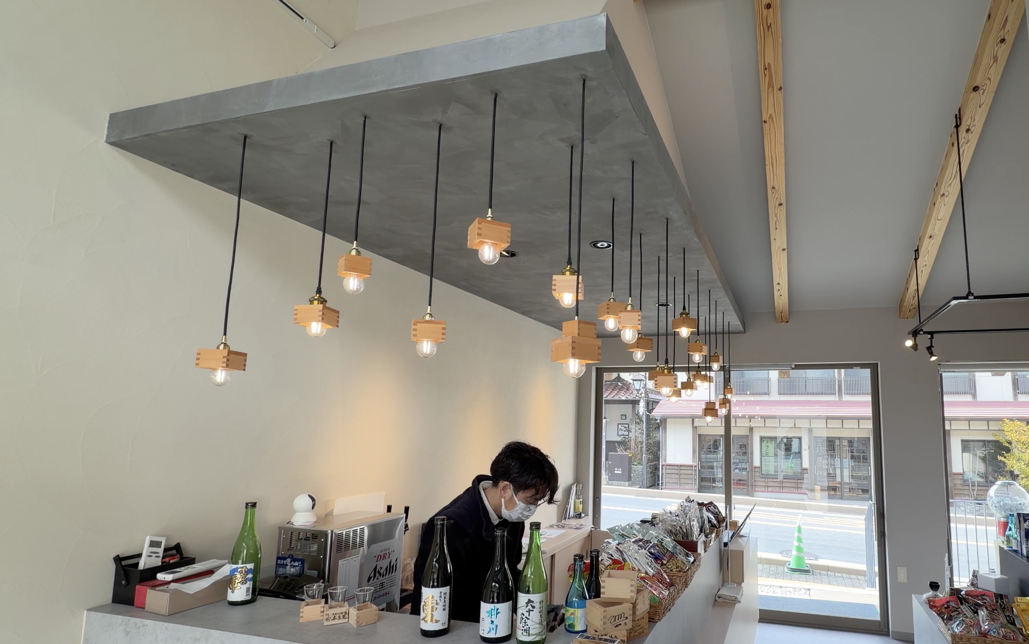 店内はリノベーションされ、お酒の枡をイメージした店内は100年以上の歴史あるお店とは思えないほどおしゃれです。