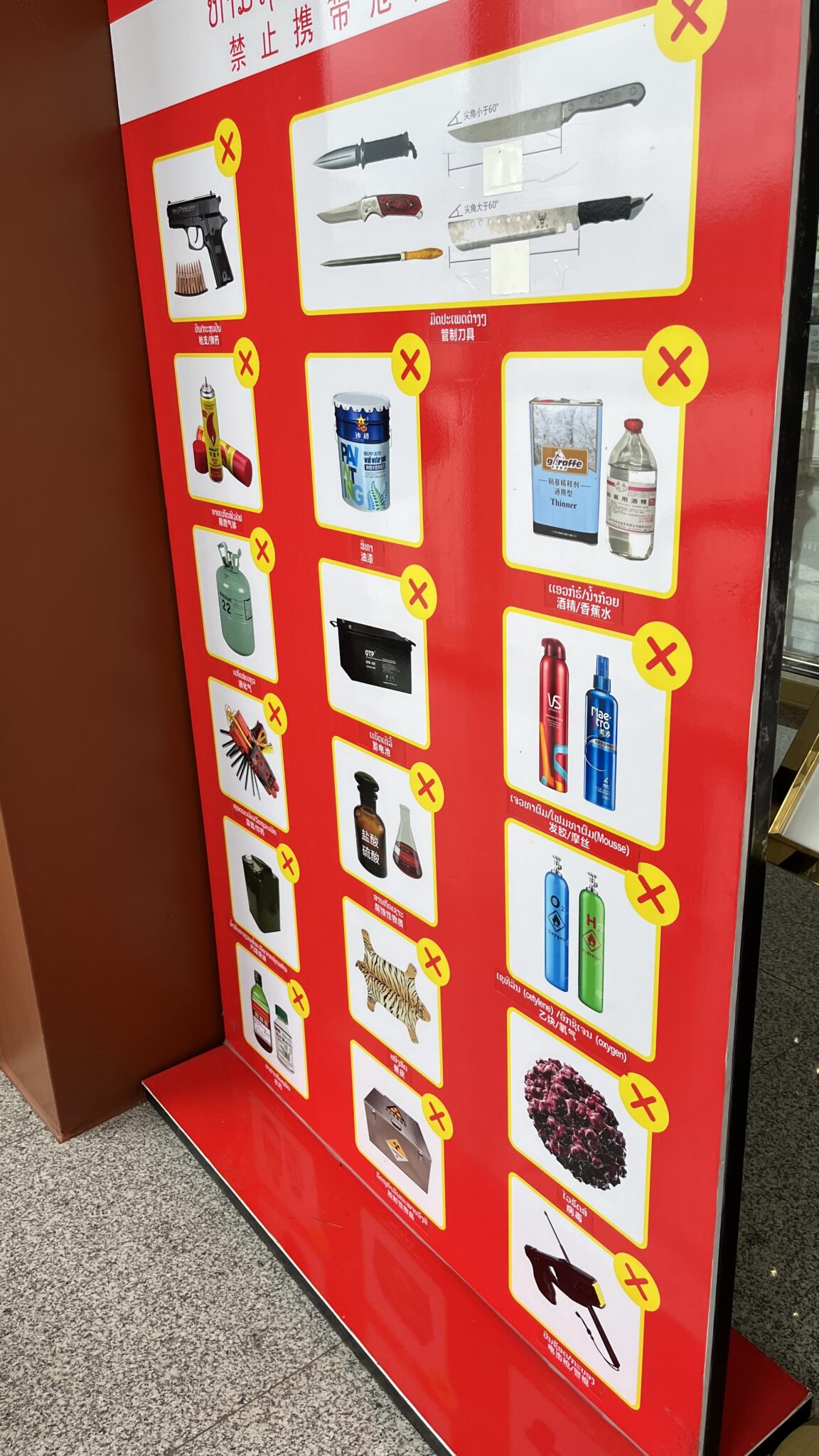 チェックイン時間と同様、飛行機のように入場にはしっかりとした荷物検査があります。手荷物の中には持ち込みできないものもあるので注意しましょう。私の場合は火気注意と記載された虫よけスプレーを没収されてしまいました。
