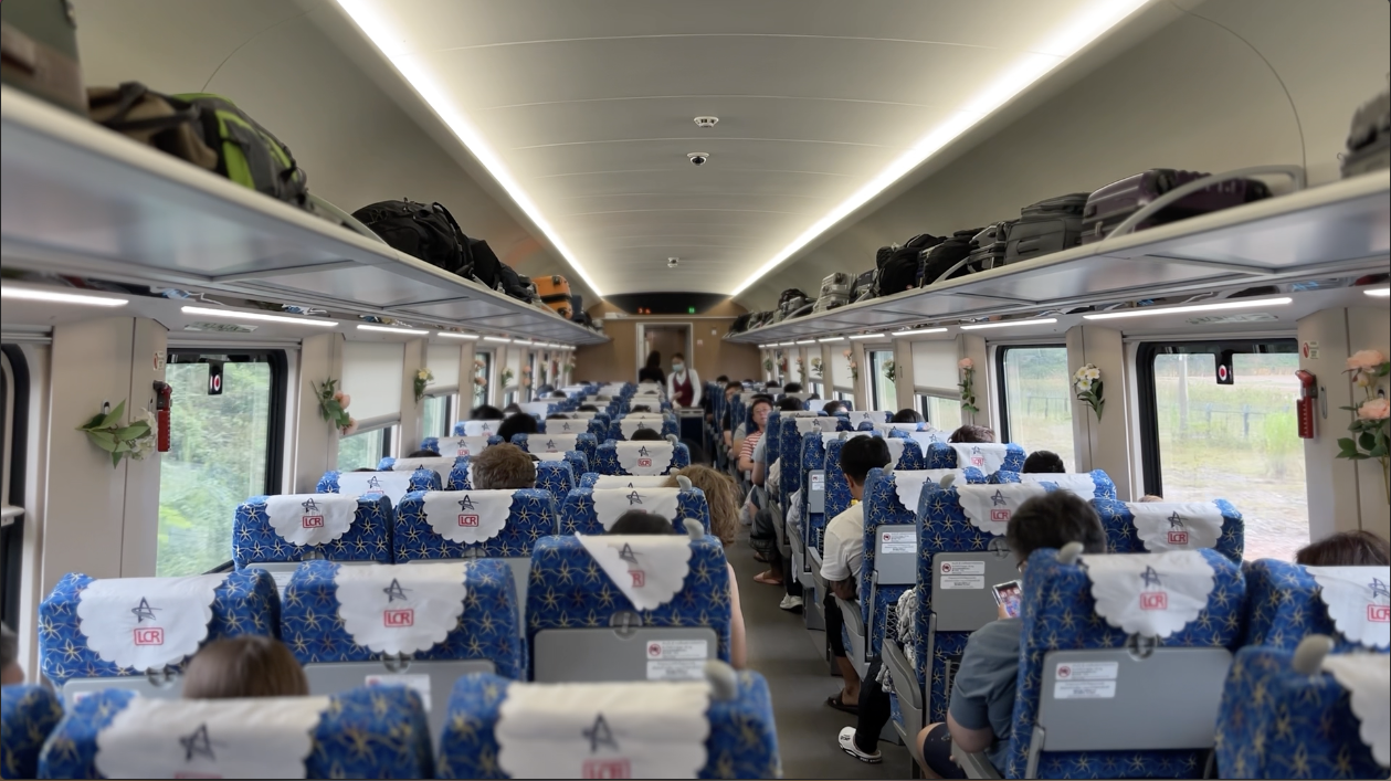 ラオス中国鉄道ではビジネスクラスと1等座席・2等座席という席種があります。今回利用した1等座席・2等座席、食堂車についてご紹介します。