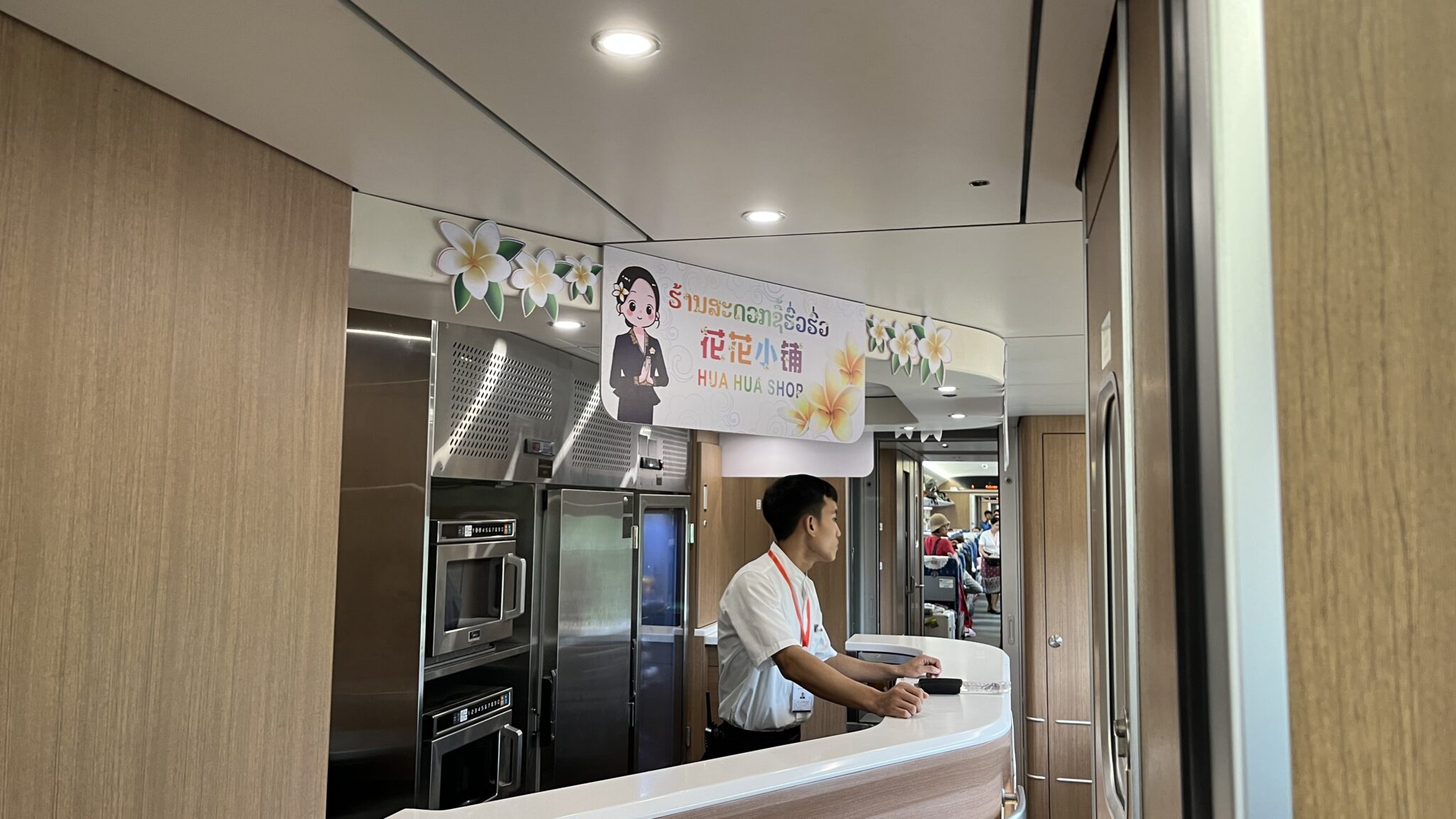 前方の座席の方には食堂車も併設されています。ここではラオスのサンドイッチであるカオチーやスナックなどを購入することができます。