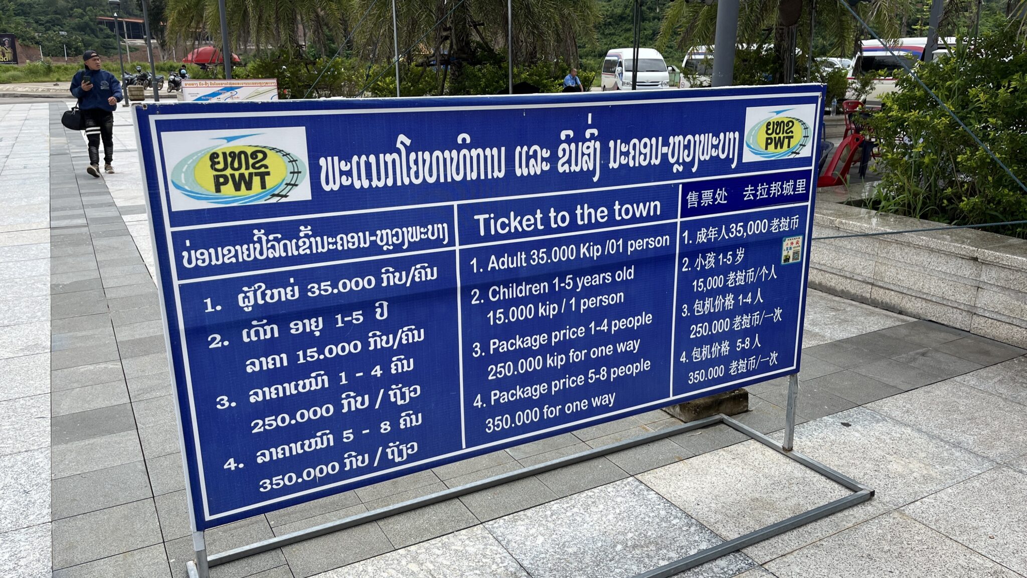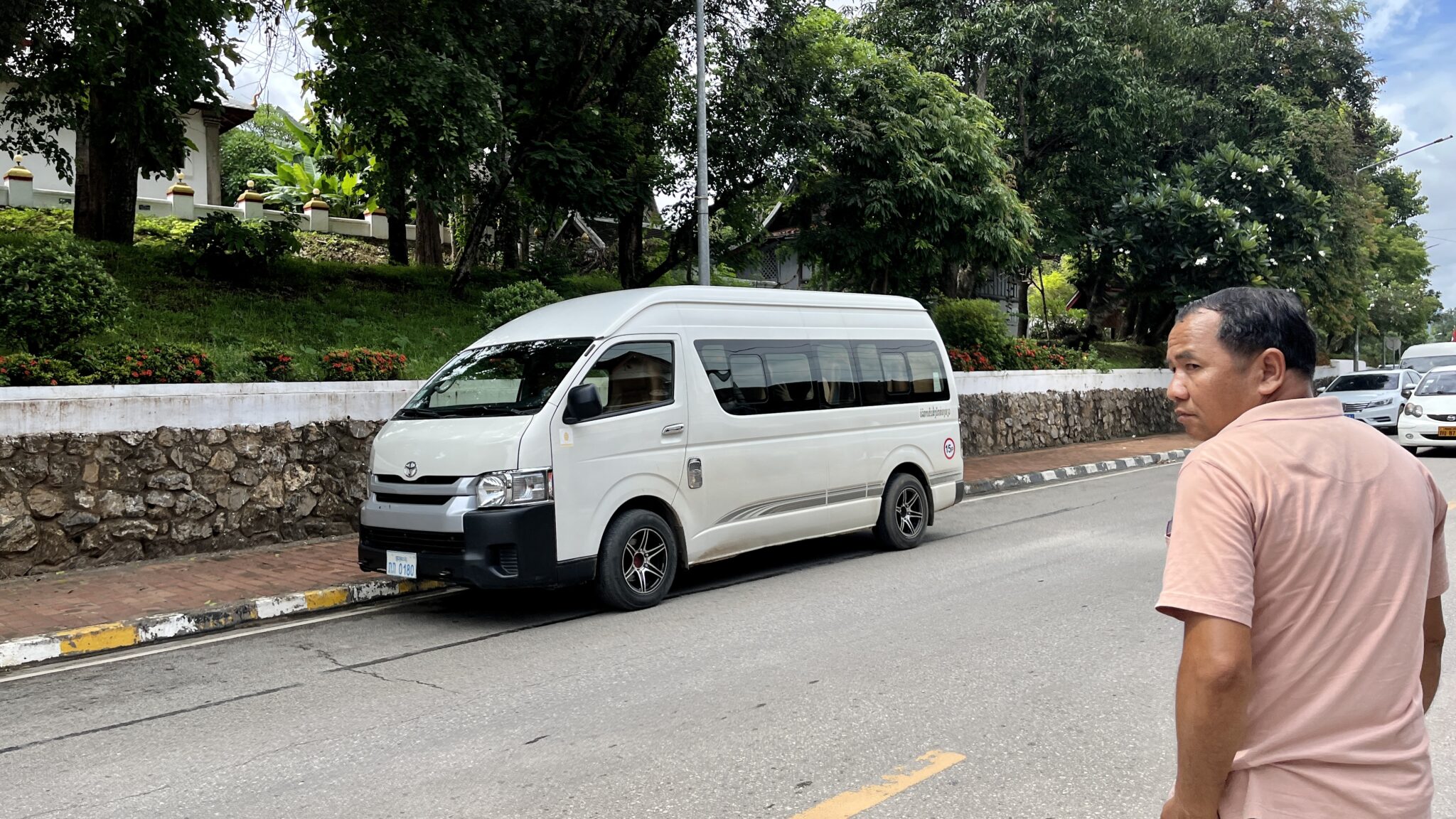 ルアンパバーン駅から市内へ行くバスは、駅前に出てすぐの場所にあります。大人ひとり35,000キープになるそうです。こちらも乗り合いバンになるので、複数のお客さんと一緒に乗ることになります。