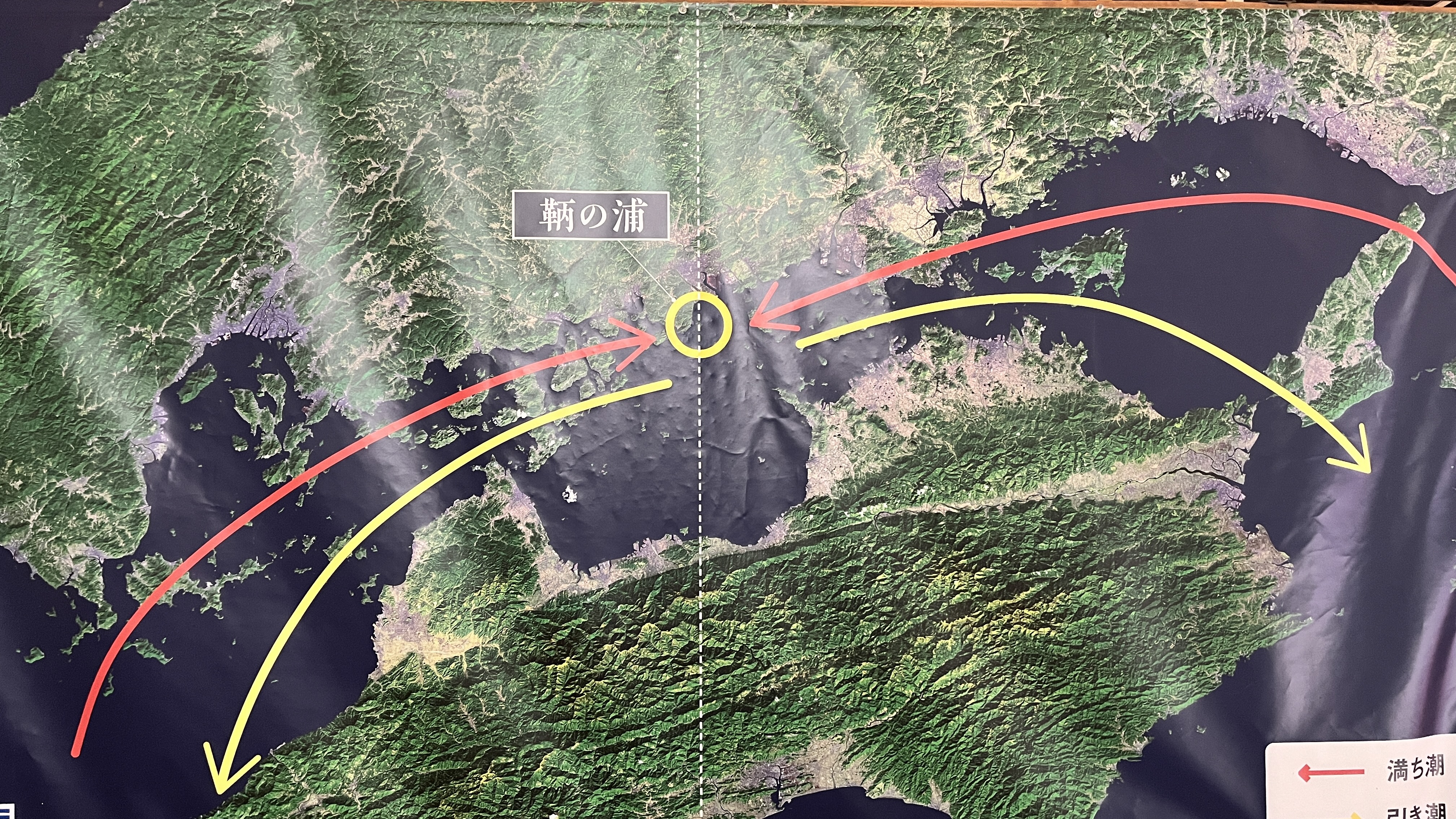 鞆の浦は瀬戸内海の真ん中に位置する港町で、東西の潮がぶつかる「潮待ち」に恵まれた場所です。近くの島々が防波堤になり、円形の港だったため内外多くの船が往来して栄えました。