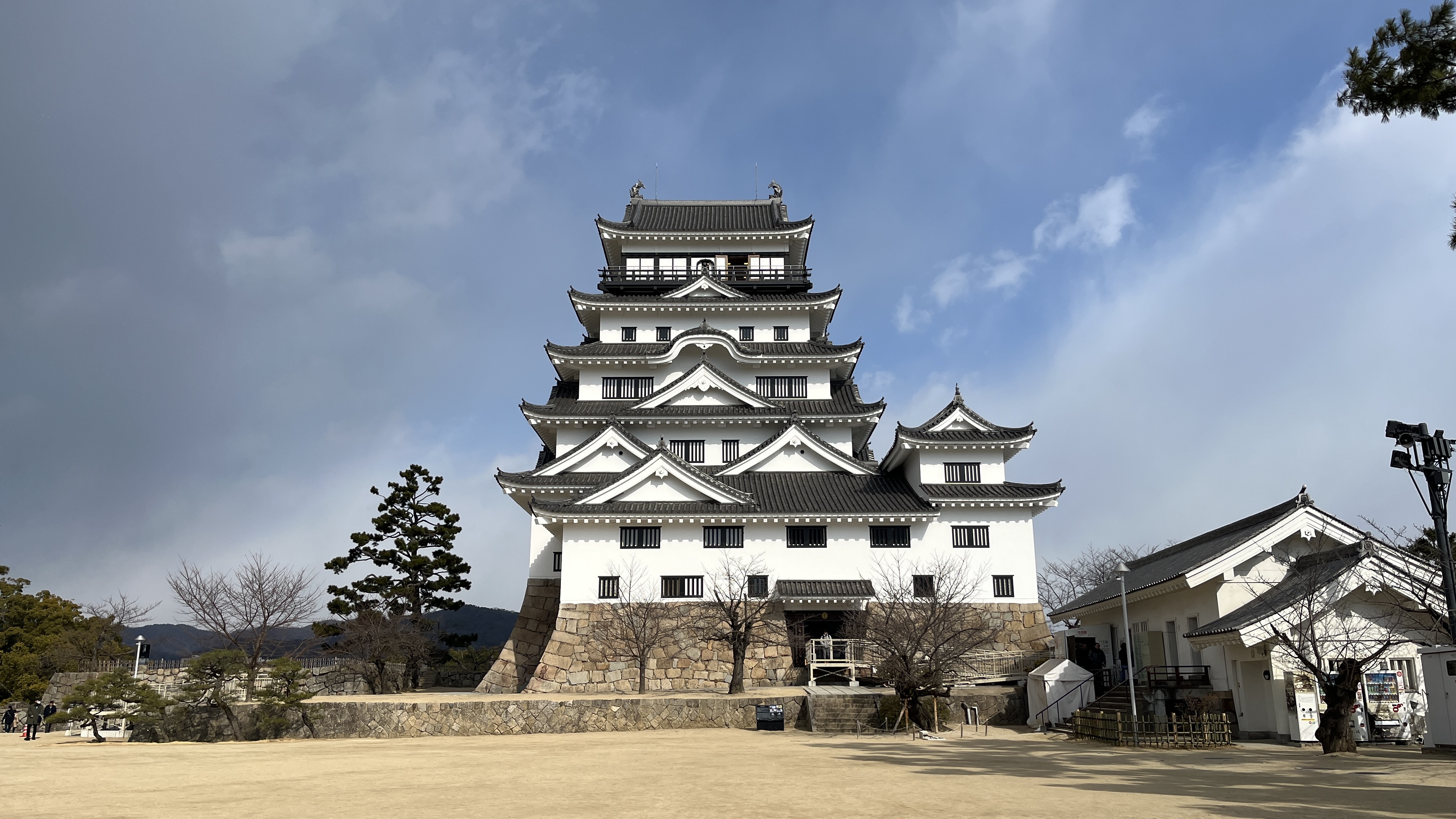 戦国武将・小早川隆景が築いたこの城は、海と城が一体となった構造が特徴。現在は新幹線の高架下に石垣が残り、過去と現代が共存するような不思議な風景を作り出しています。