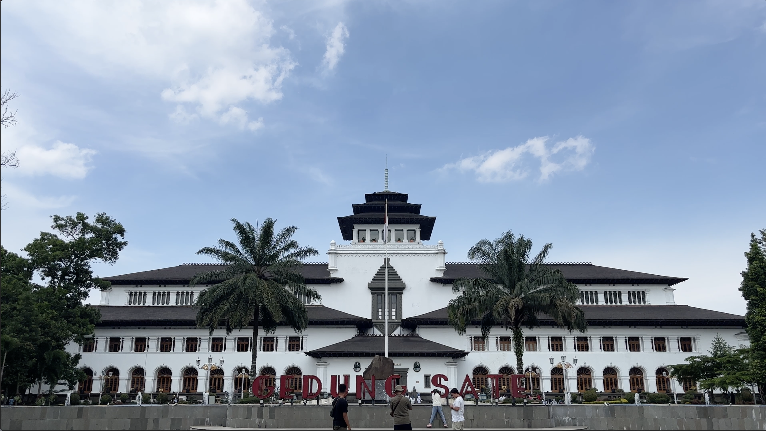 バンドゥン市のランドマーク「グドゥン・サテ(Gedung Sate)」は、オランダ統治時代に建てられた州庁舎。建物の中央に“サテ(焼き串)”のような装飾があることからこの名が付けられました。白亜の外観はヨーロッパ建築とインドネシア文化が融合しており、写真撮影スポットとしても人気です。