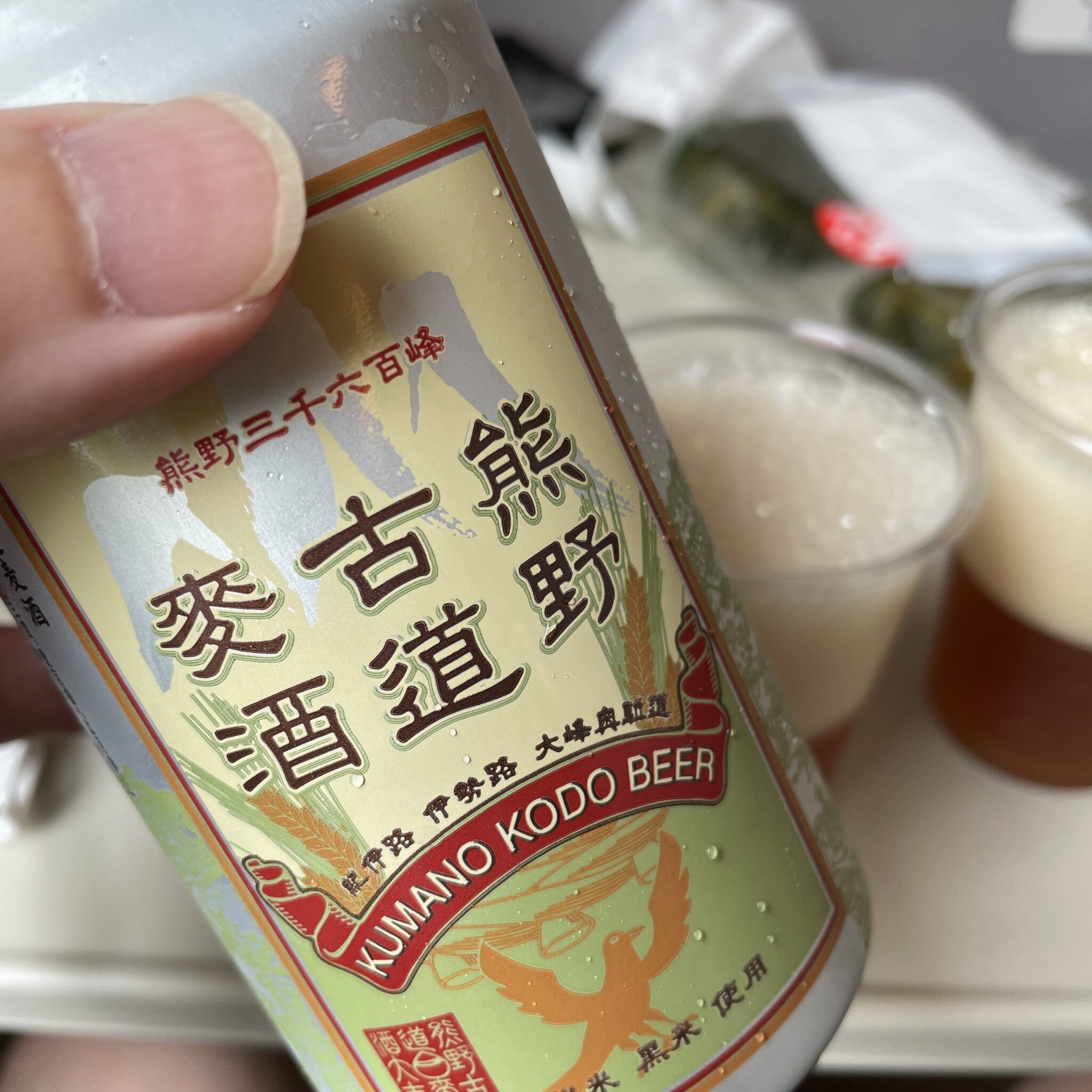 白浜駅の売店で買った熊野古道麦酒とカールで乾杯!