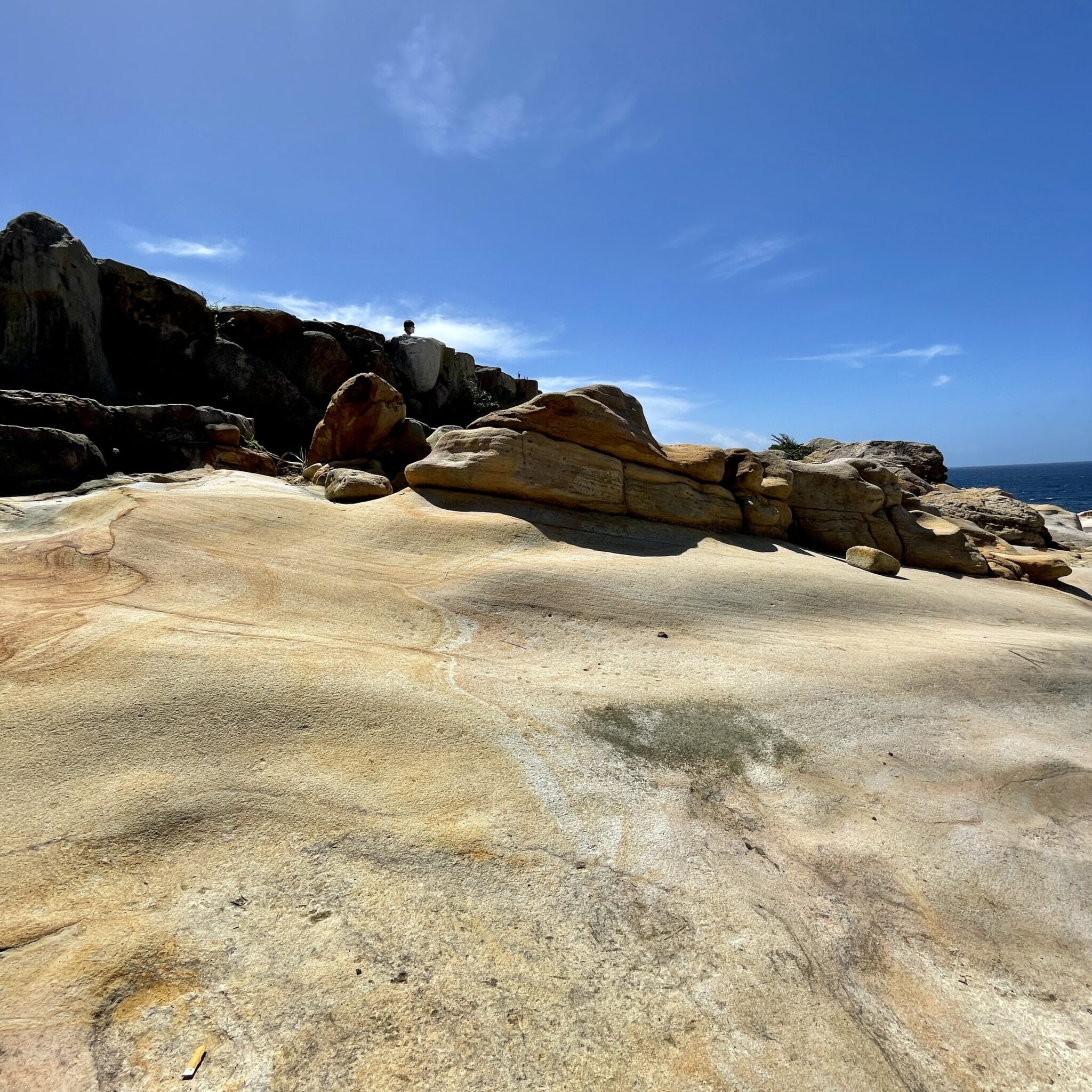 1,800万年前の地層が波の侵食を受けて形作られた海岸段丘です。柔らかな砂岩によって作られた地層は美しい曲線を描いています。