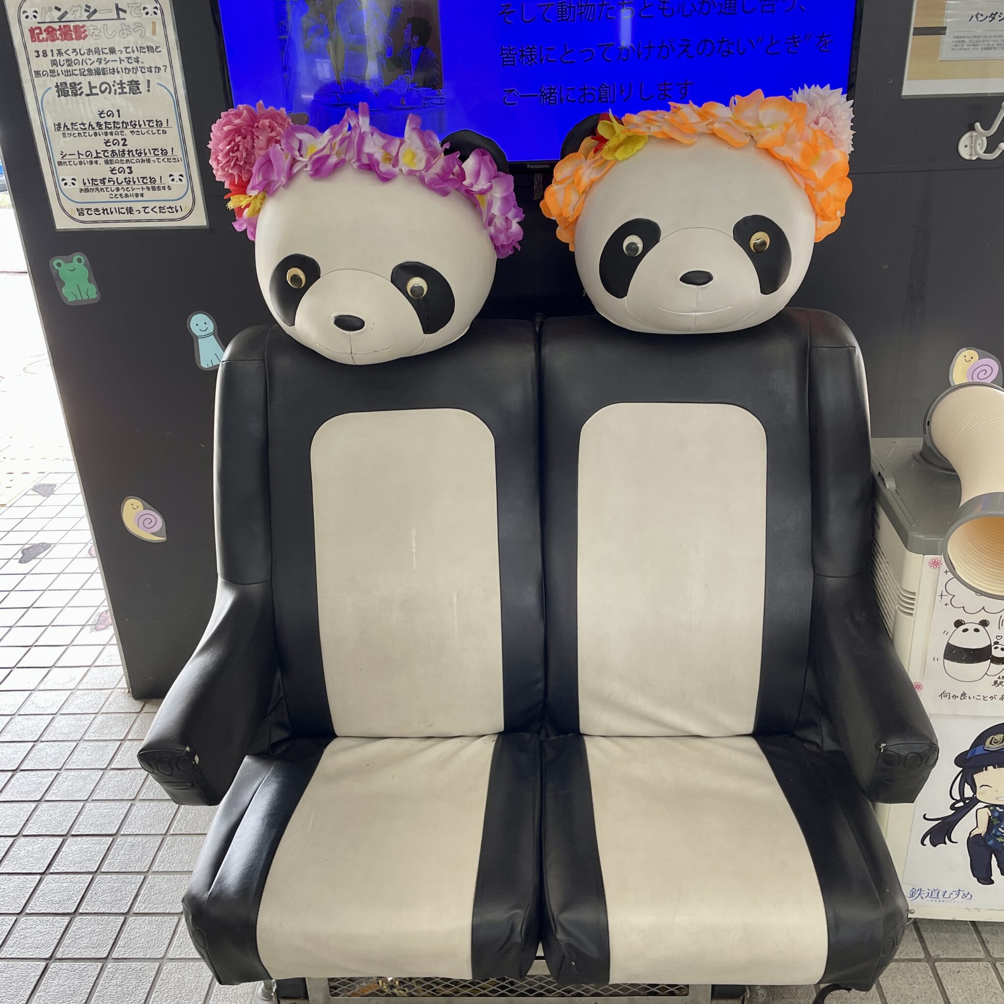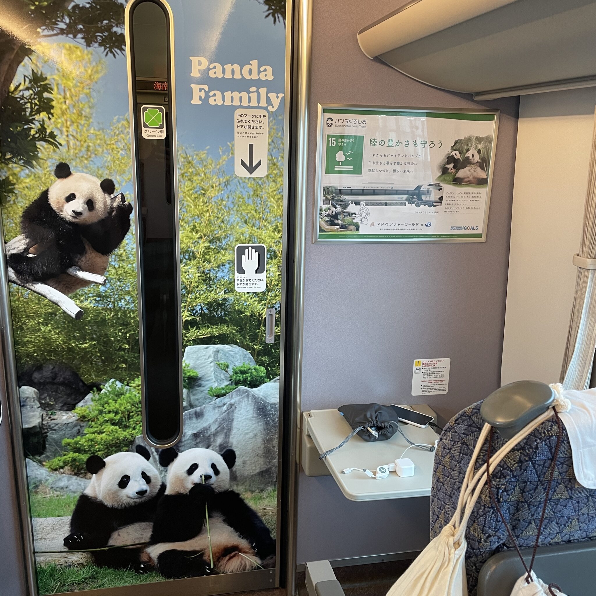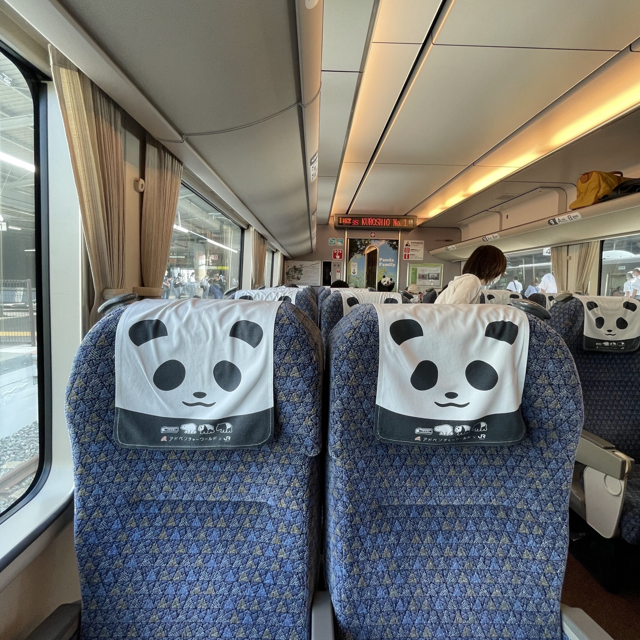 特急くろしおのパンダくろしおは、車内もパンダ一色です。