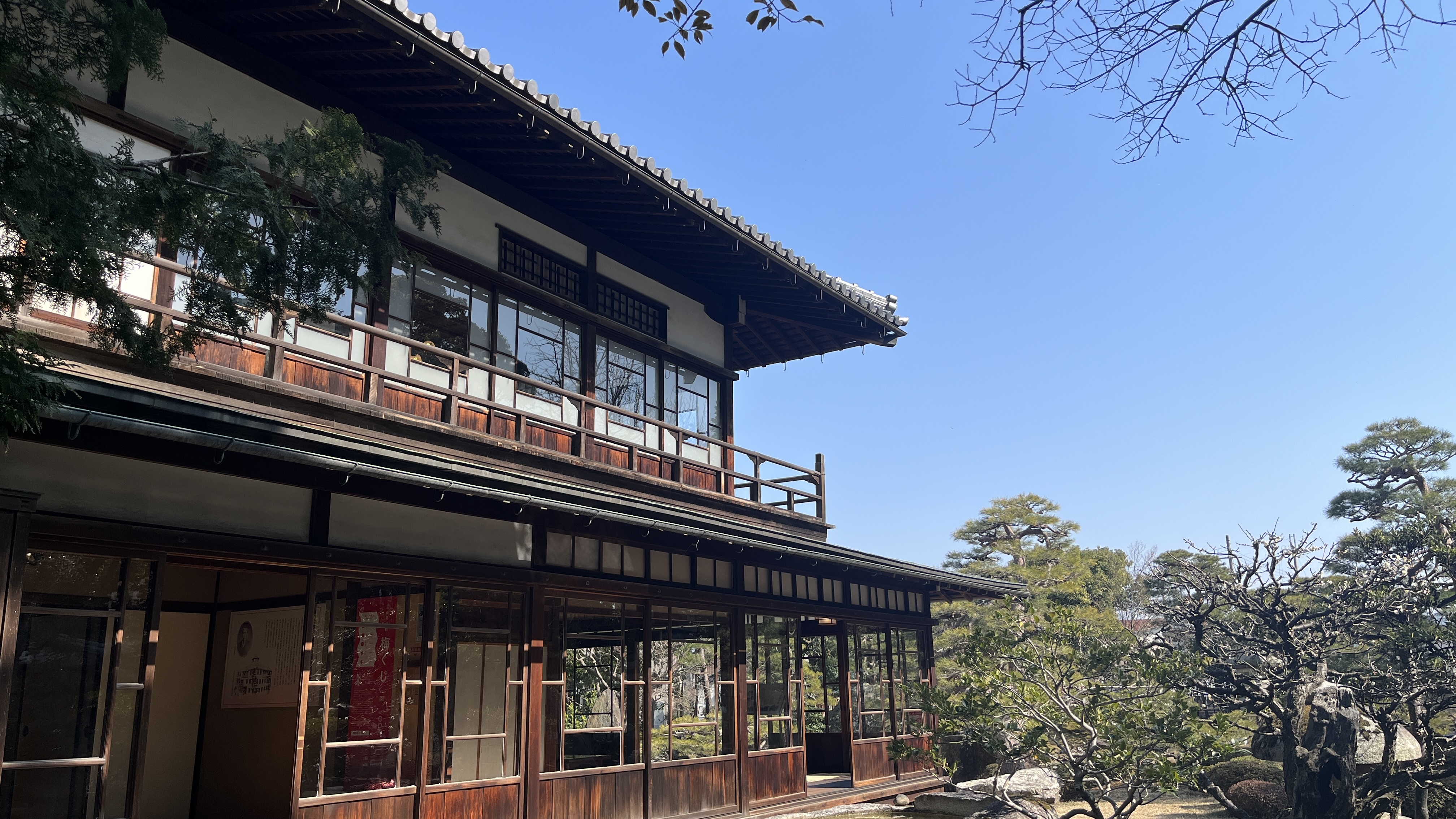 旧長浜駅舎の向かいには明治期に建てられた「慶雲館」があります。ここはかつて明治天皇が船で琵琶湖を渡ったあとに鉄道の到着を待つための行在所として建てられた由緒ある建物で、現在庭園には春になると約300本の梅が咲き誇り、訪れる人々を迎えます。