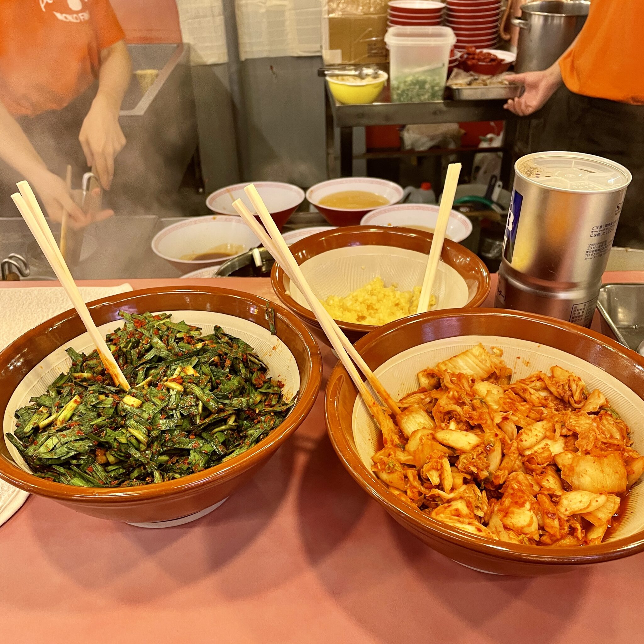 キムチ、ニラ、ニンニクは取り放題。 ラーメンに入れるたび劇的に味があって変わります。