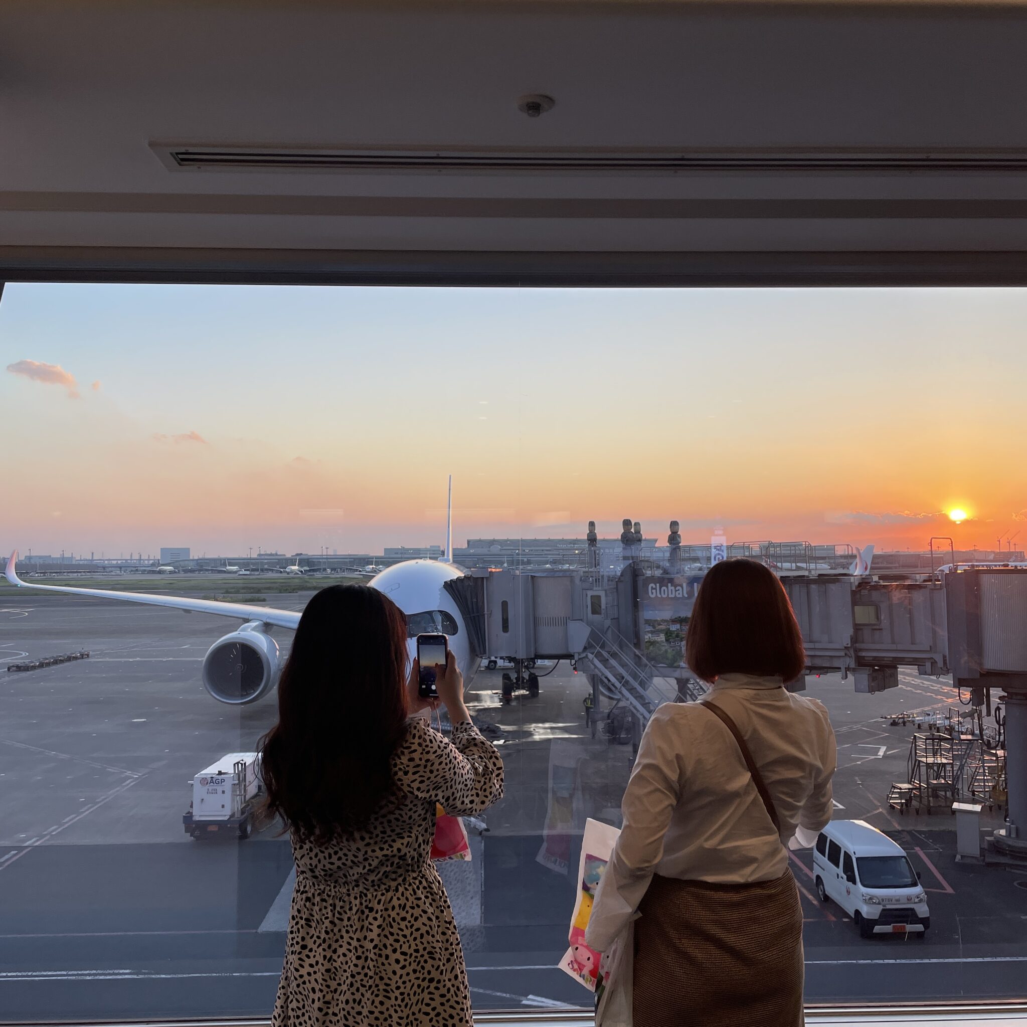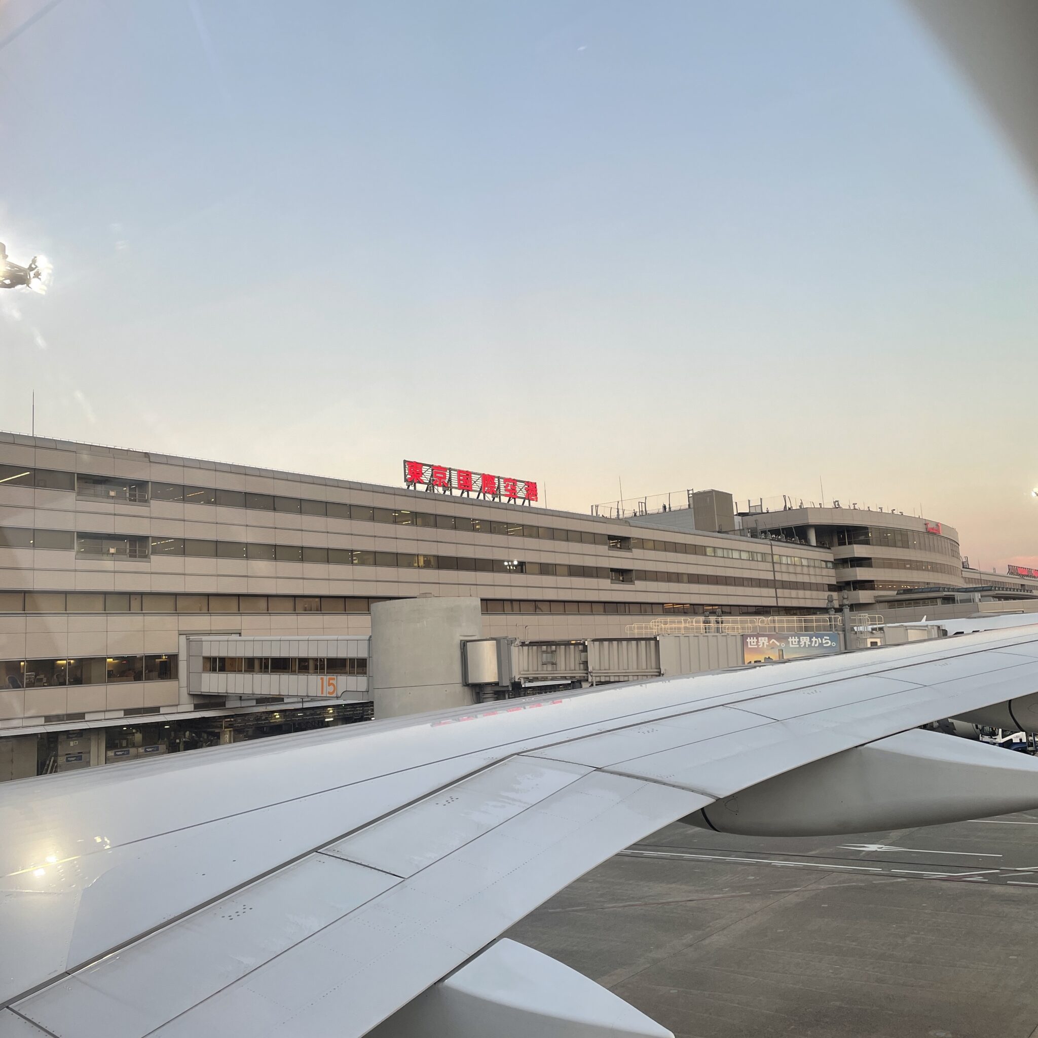 いよいよ搭乗の時間が迫ってきました!搭乗は夕陽の落ちる16番ゲートから出発! 伊丹まではあっという間なので、短い間ですが、最新機材のA350を堪能します。