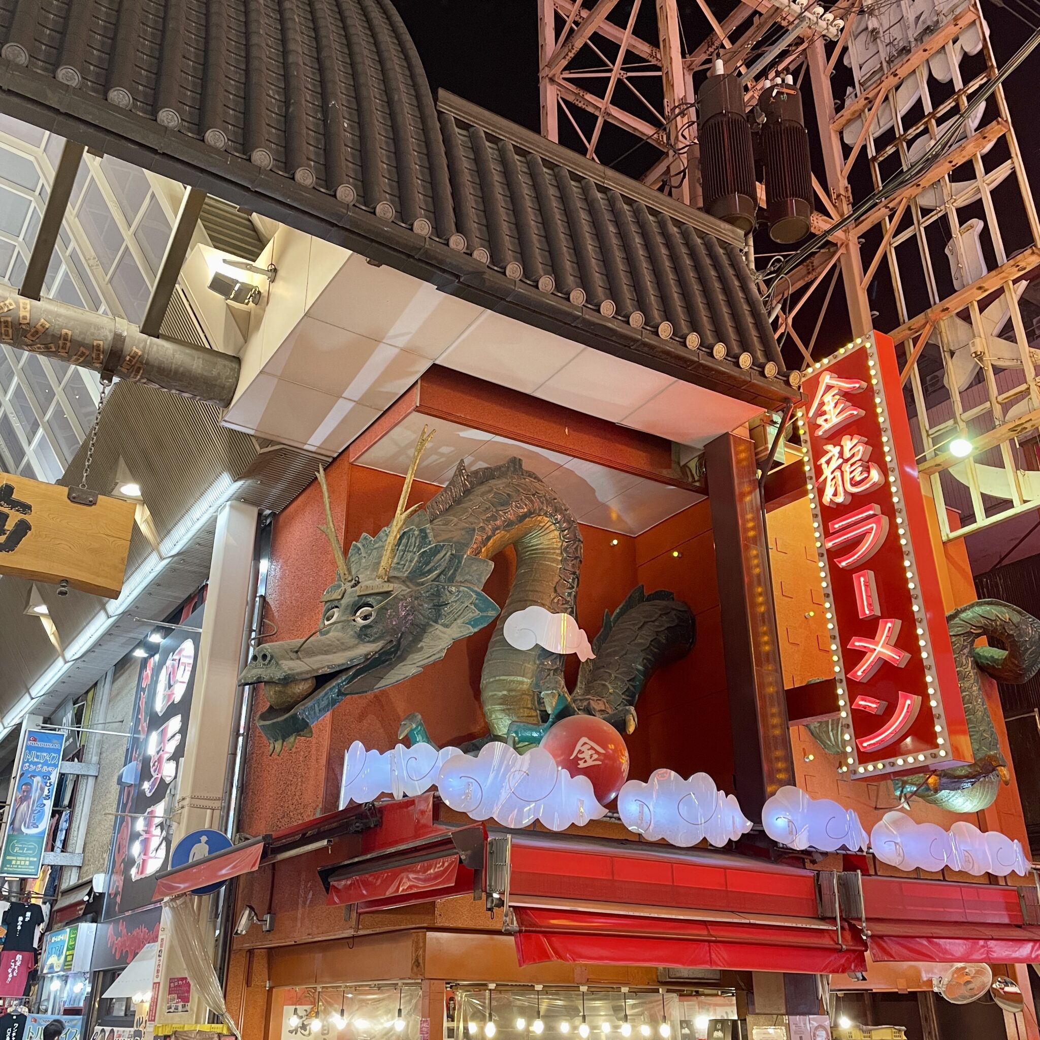 なんばに到着してすぐ、大好きなうどん屋さんに向かいましたが、まさかの営業時間外! 汁物を諦められないので、少し歩いて金龍ラーメンへ。 道頓堀の名物と聞いていましたが食べた事なかったので貴重な経験でした。