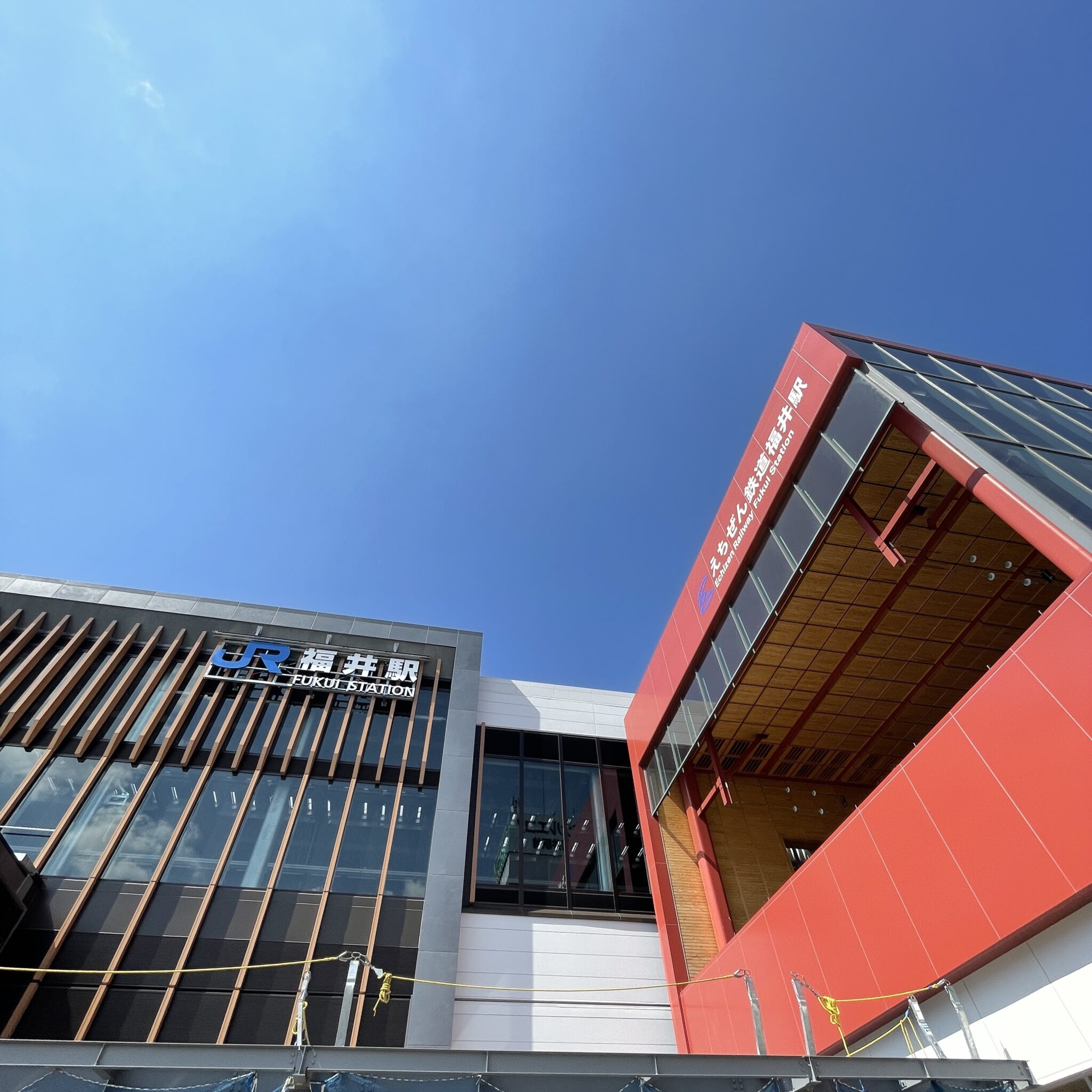 わずか2時間ほどで福井駅に到着しました!新幹線開通に向け、着々と建設されている福井駅!木材をふんだんに使った豪華な駅舎になりそうですね。 未来の駅を横目に「えちてつ」ことえちぜん鉄道に乗車し次の目的地を目指します。