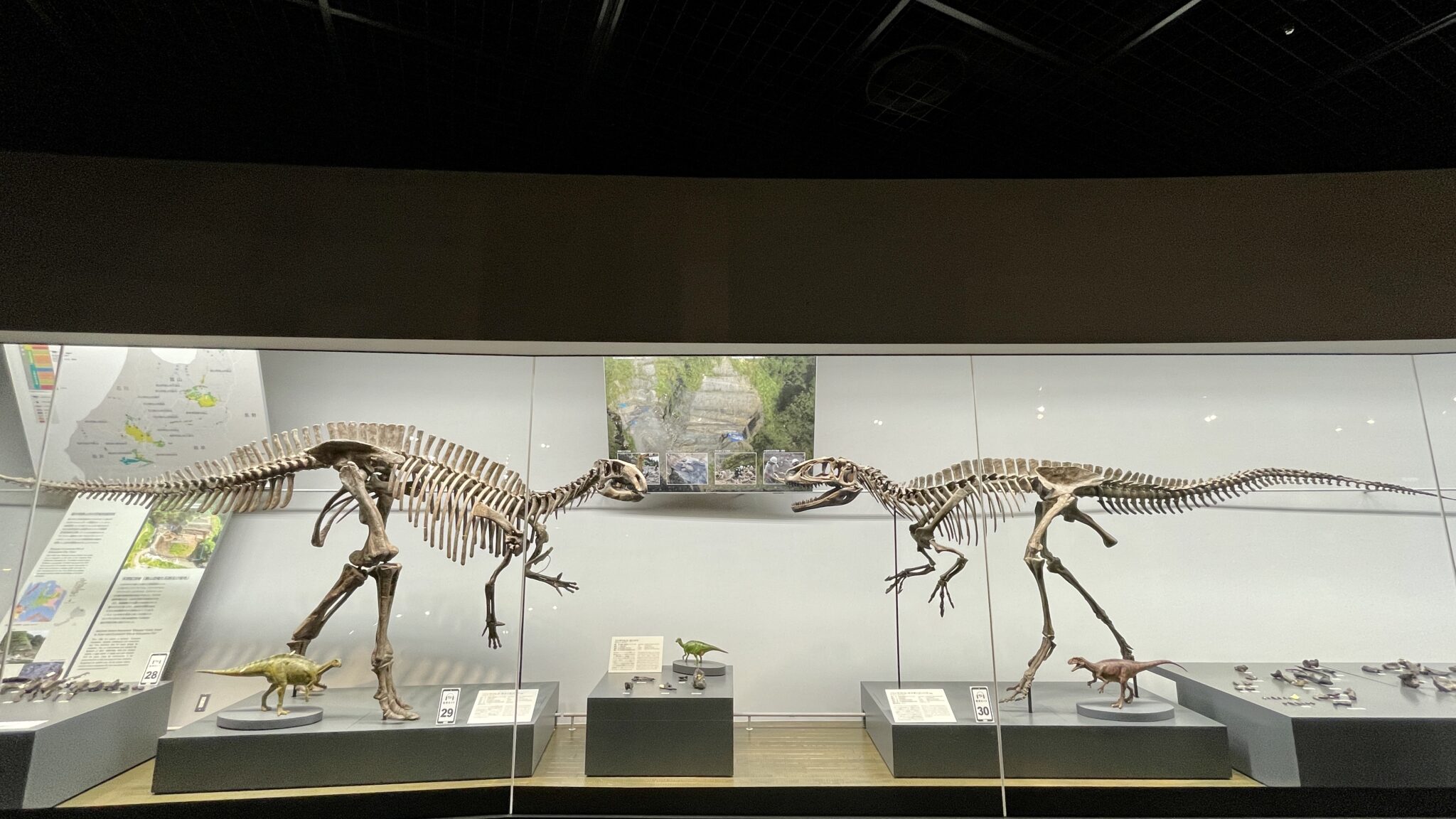 恐竜博物館のメインの一つとも言えるのが、福井県で発見された恐竜の骨です。 ここまで大量の骨が発見されることは珍しく、これらの骨格標本が福井を恐竜県にさせている要因です。手取層と呼ばれる地層で見つけられる骨が、ここ勝山で多く露出していたそうです。