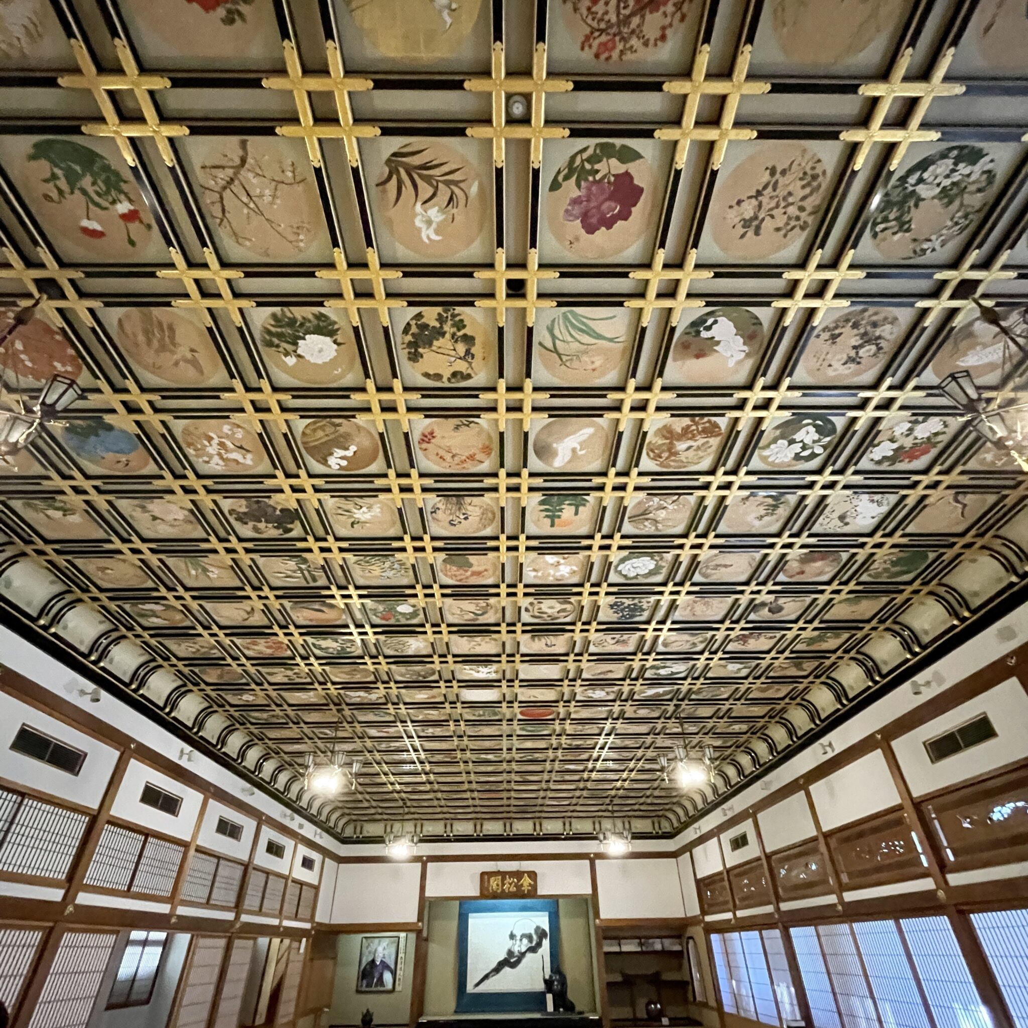 永平寺に入るとすぐ見る事ができるのが、傘松閣の天井画です。 格天井の一つ一つに描かれた230枚もの日本画に圧倒されます。 広間は156畳にもなる広さで、ここを見るために永平寺を訪れる価値があると言っても過言ではありません。
