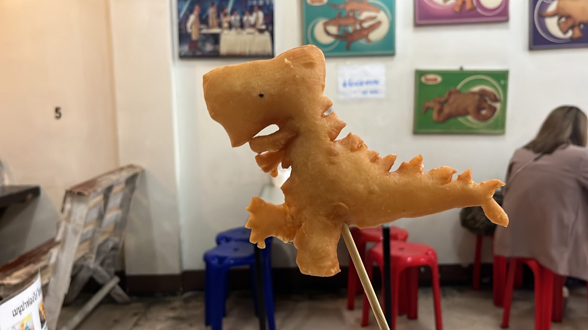 恐竜や龍などの様々な生き物をかたどった揚げパンは、写真映えするので店頭で写真を撮る女子が大勢いました笑パットンコーは20B(≒80円)から、恐竜などのキャラものは30B(≒120円)から食べることができます。気軽に買えるストリートフードですね。