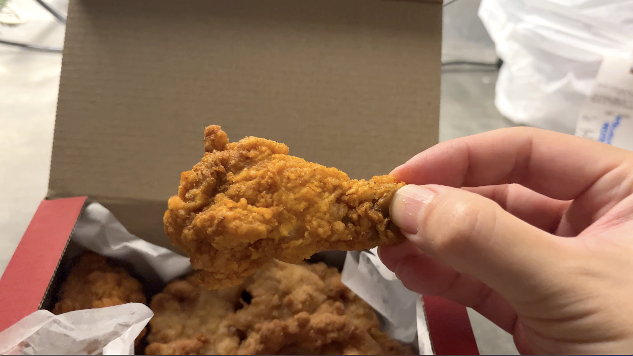 タイのKFCは日本のものとは異なり、よりサクサクした衣が特徴的です。使われているスパイスも異なっているように感じます。日本よりもやや薄味で、付属のソースをつけて食べるスタイルのようです。