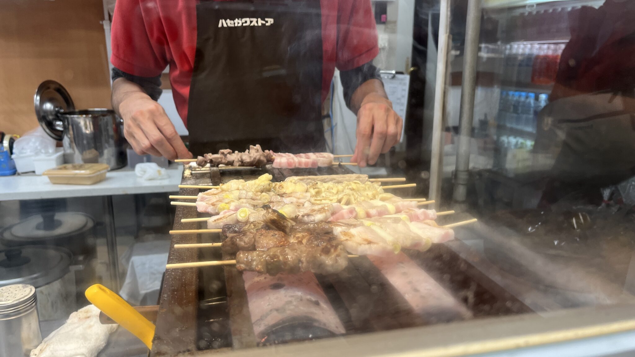 常連さんはハセガワストアに入るとまずやきとりを注文して、出来上がりを待つ間店内を物色するという方が多いようでした。作り置きをせず、注文を受けてから作るという点がおいしいやきとりの秘密になっています。