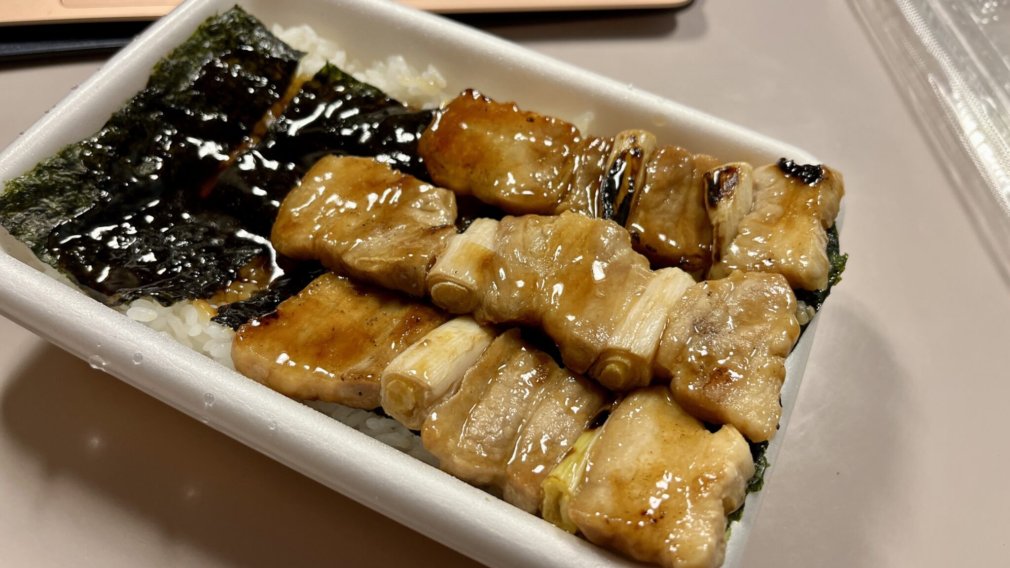 ハセガワストアで特に人気の商品が、やきとり弁当です。「やきとり」という名前ですが、パッケージにもある通り豚肉を使用しています。