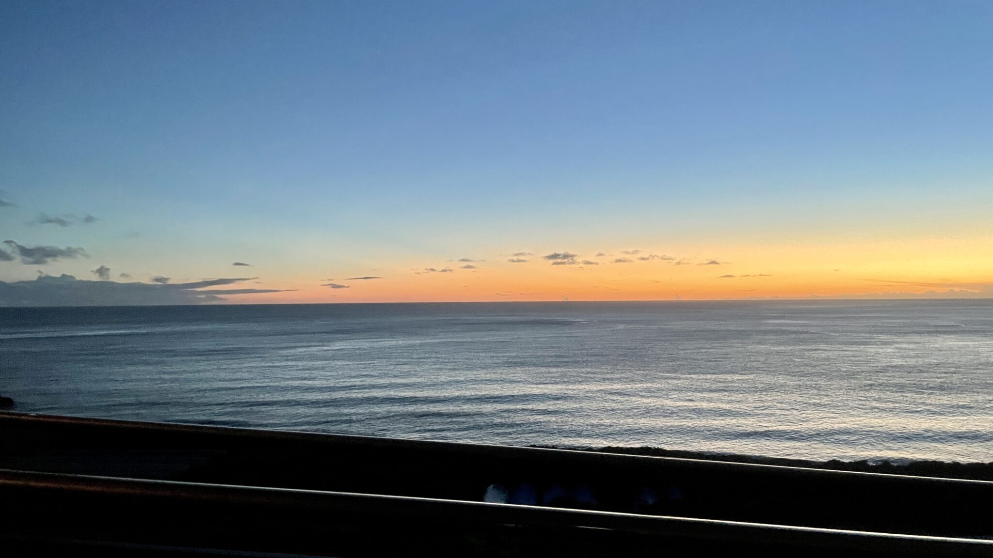 八丈小島が見える夕日を見れる時間は僅かなので、このシーンをバスに乗ってみる事ができて感無量です!