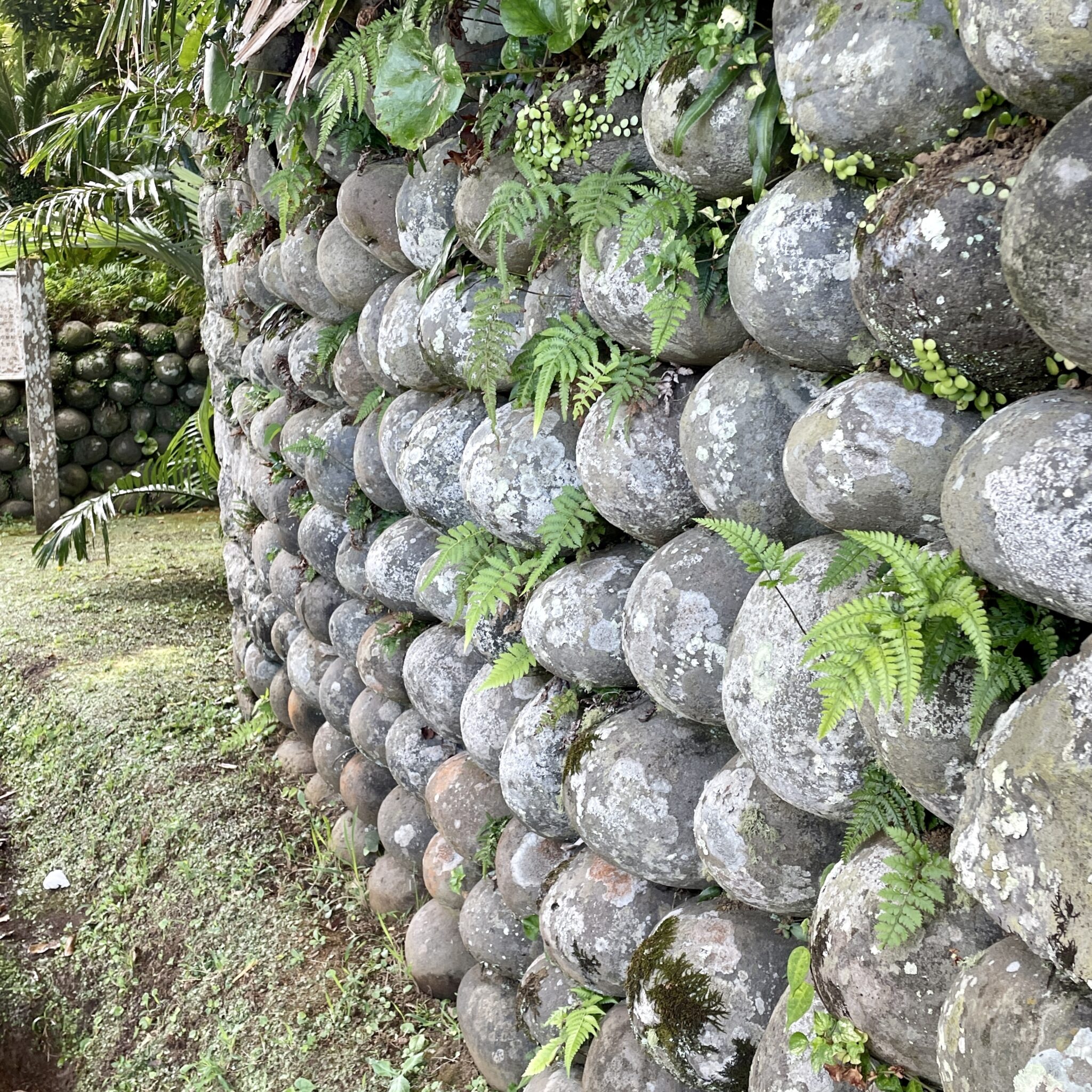 大里の玉石垣と呼ばれる丸い石を積んだ石垣は八丈島を代表する景色の一つです。