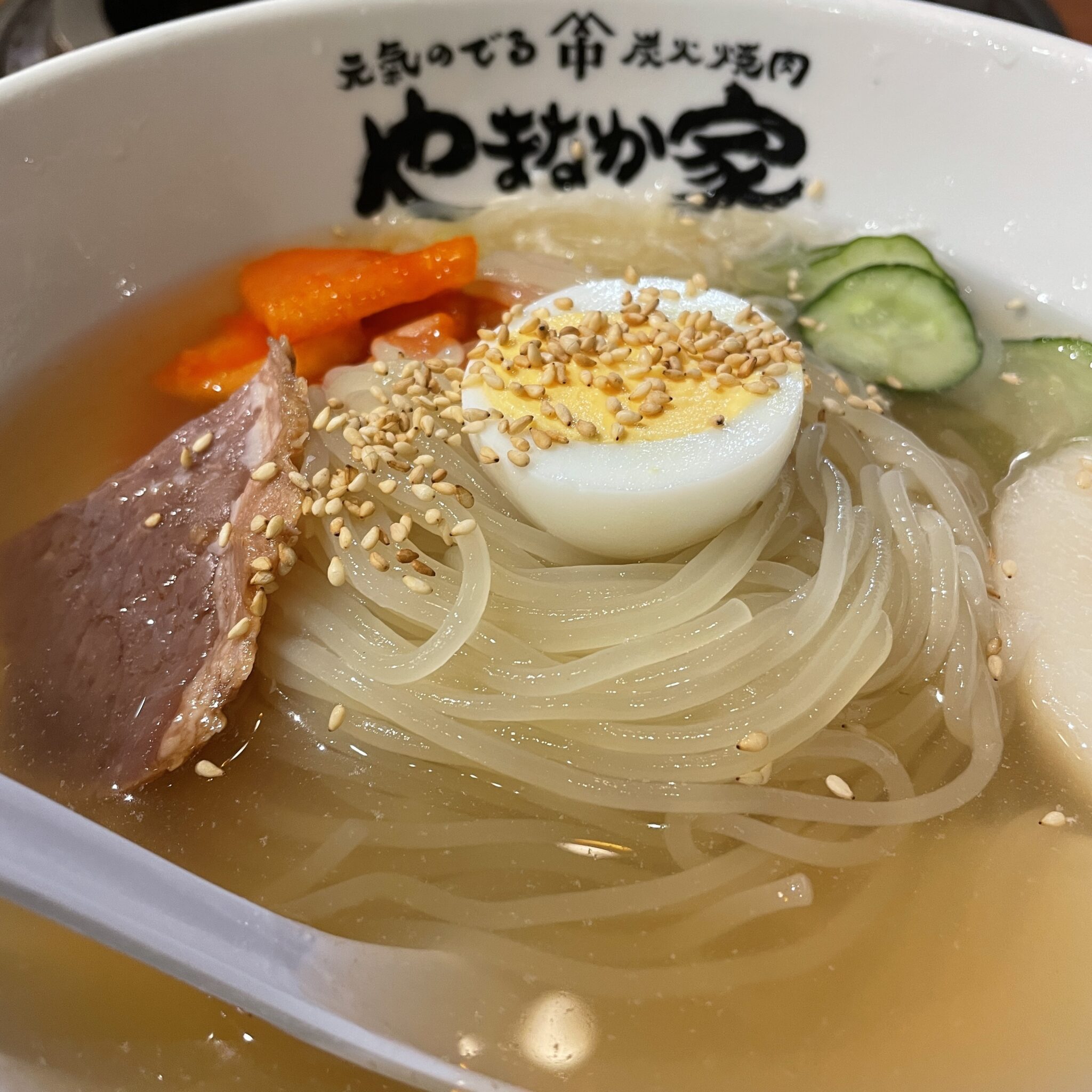 そして冷麺! スープは出汁が効いていて美味い! 冷麺は焼き肉を食べたあとの締めとしてさっぱり味の薄いものという印象でしたが、盛岡の冷麺はがっちり旨味のある単体でもおいしいものです。