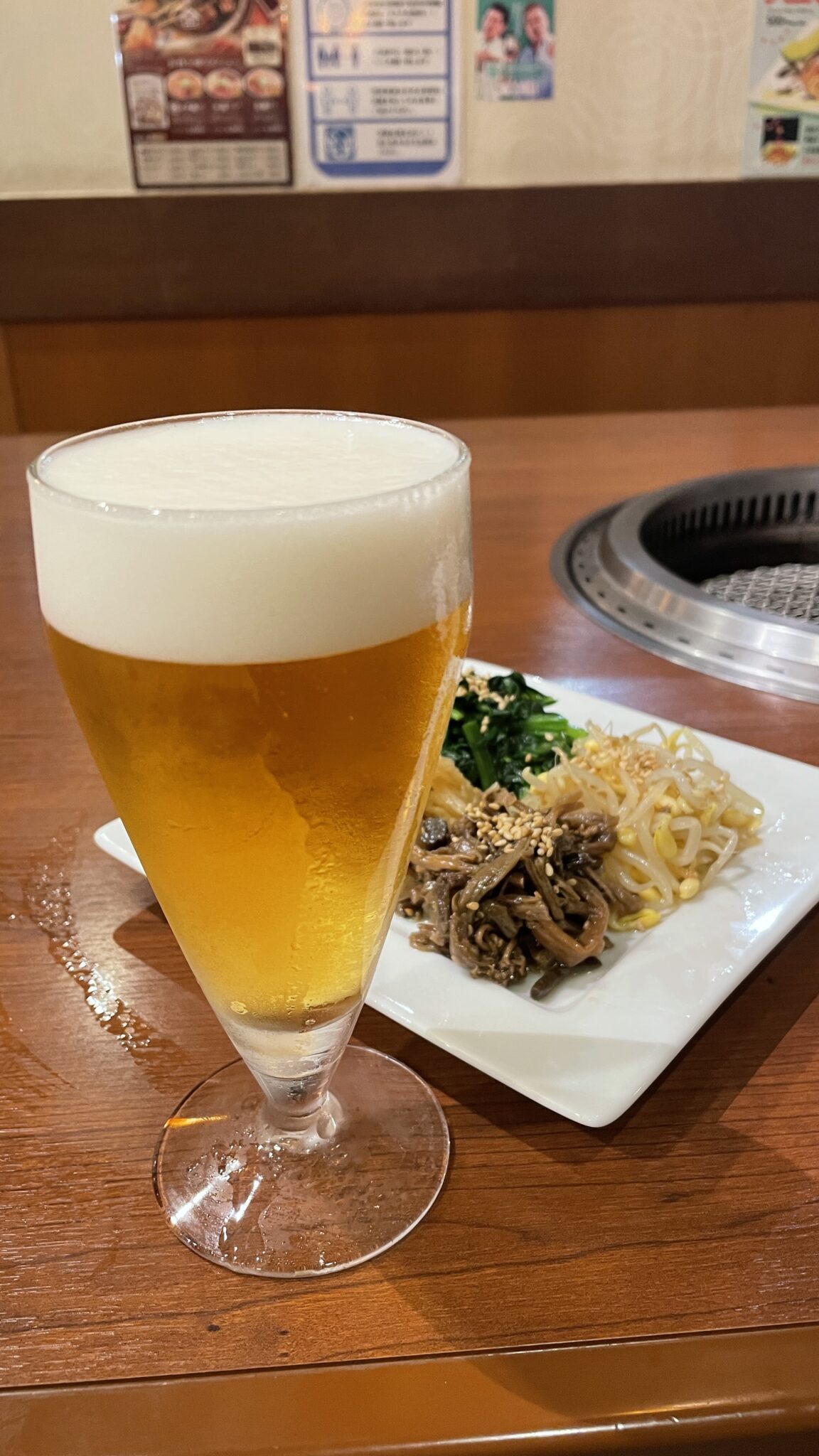 お肉が焼けるまで、ナムルとセットビールで乾杯!ビールも安価な値段で、ついついおかわりしてしまいました。